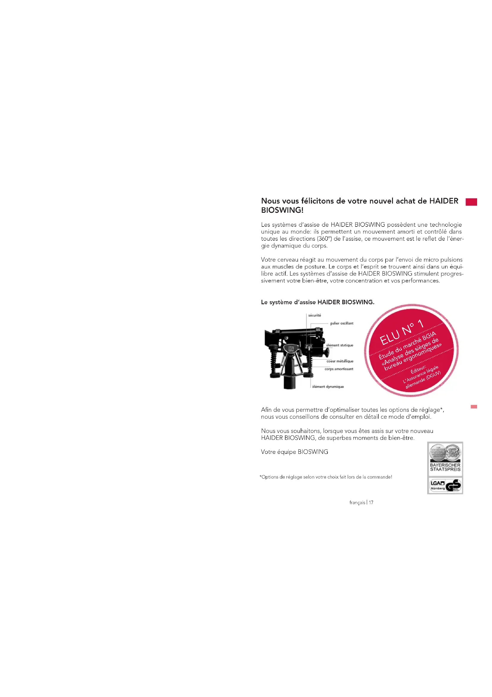Nous vous félicitons de votre nouvel achat de HAIDER BIOSWING!