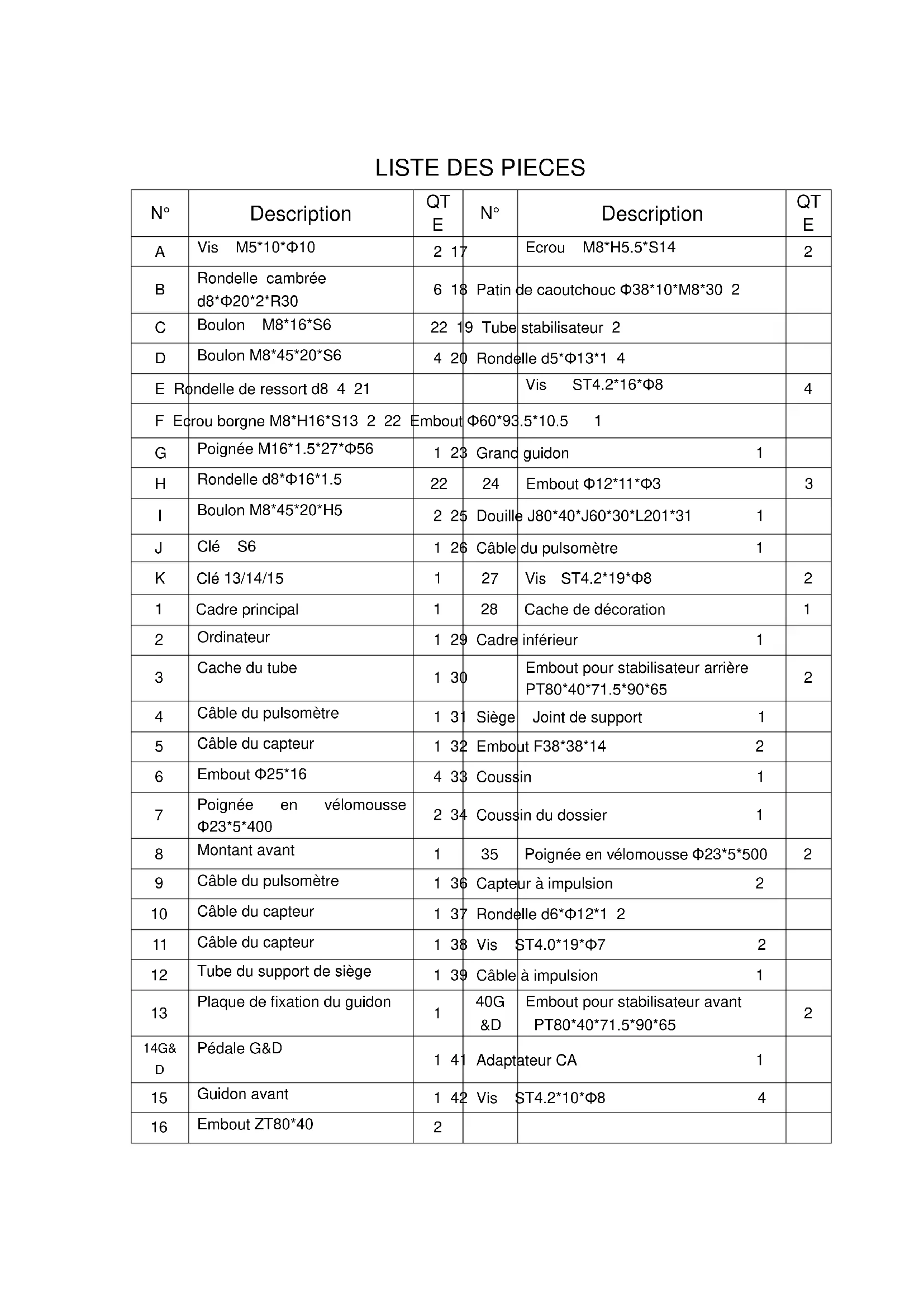 | 8 | Montant avant | 1 | 35 | Poinnée en vélomousse Φ23*5*500 | 2 |