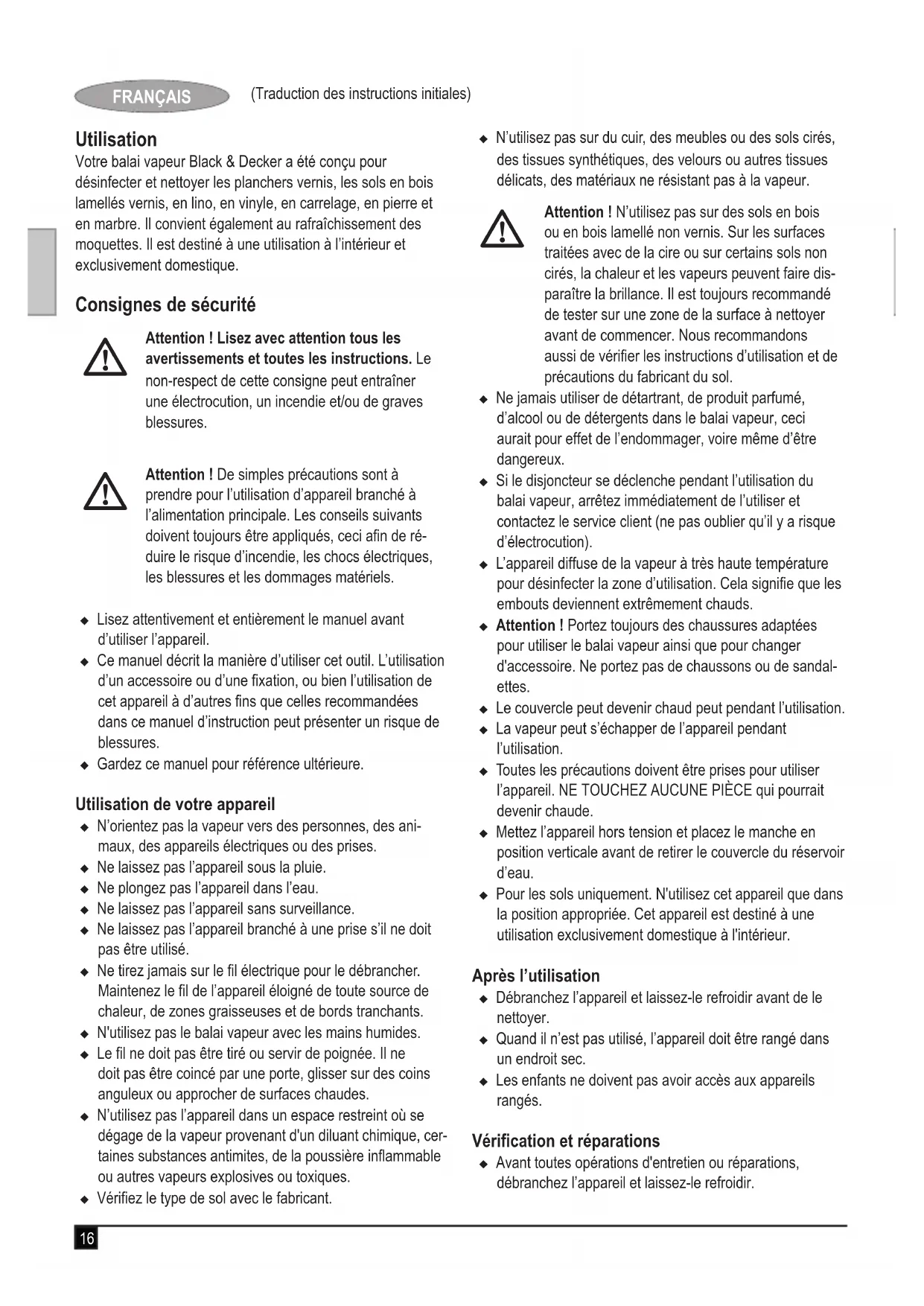 MODE D'EMPLOI FSM1500 BLACK & DECKER