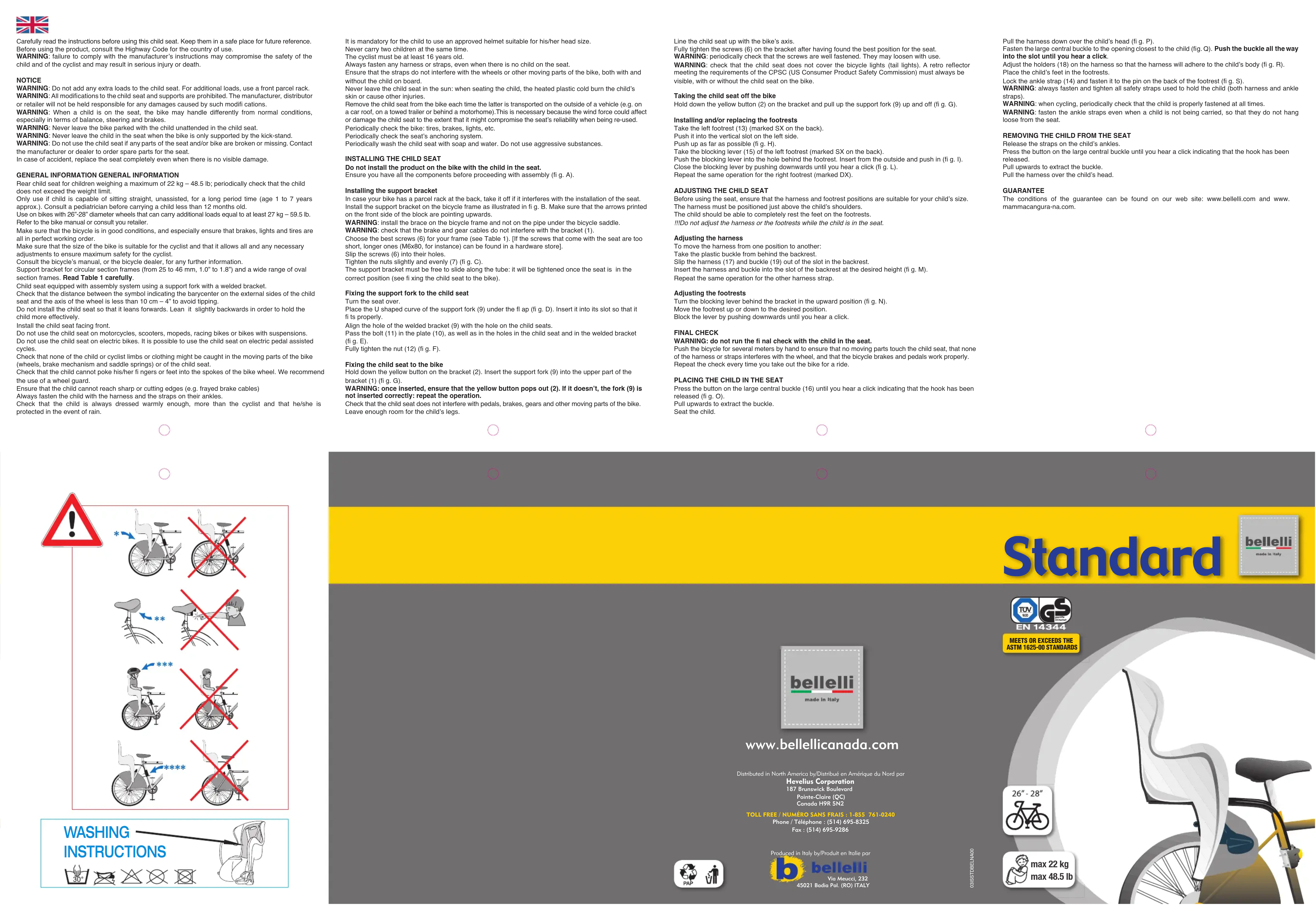 Standard - Siège vélo enfant Bellelli - Notice d'utilisation et mode d'emploi gratuit
