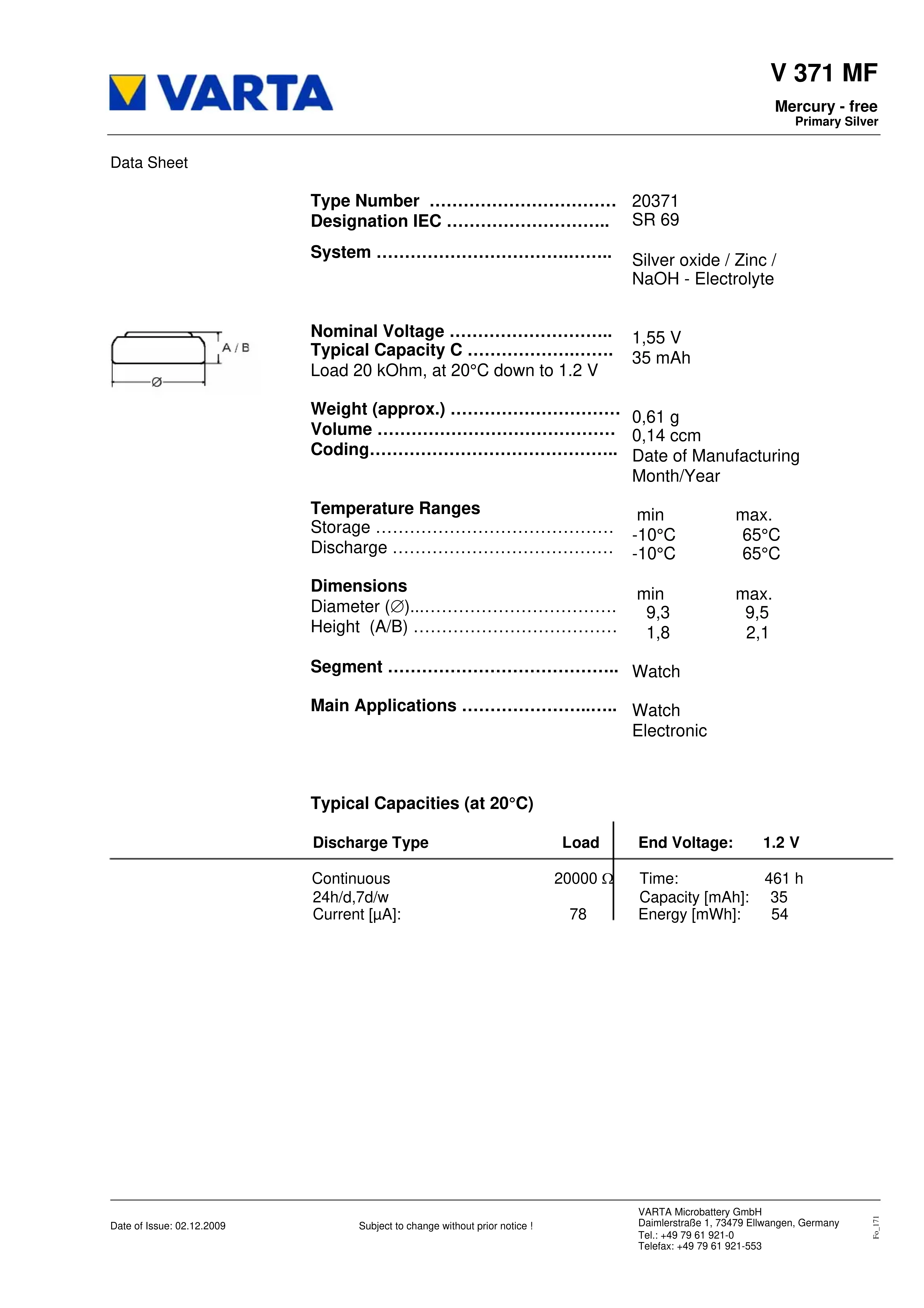 00371101401 - Batterie VARTA - Notice d'utilisation et mode d'emploi gratuit