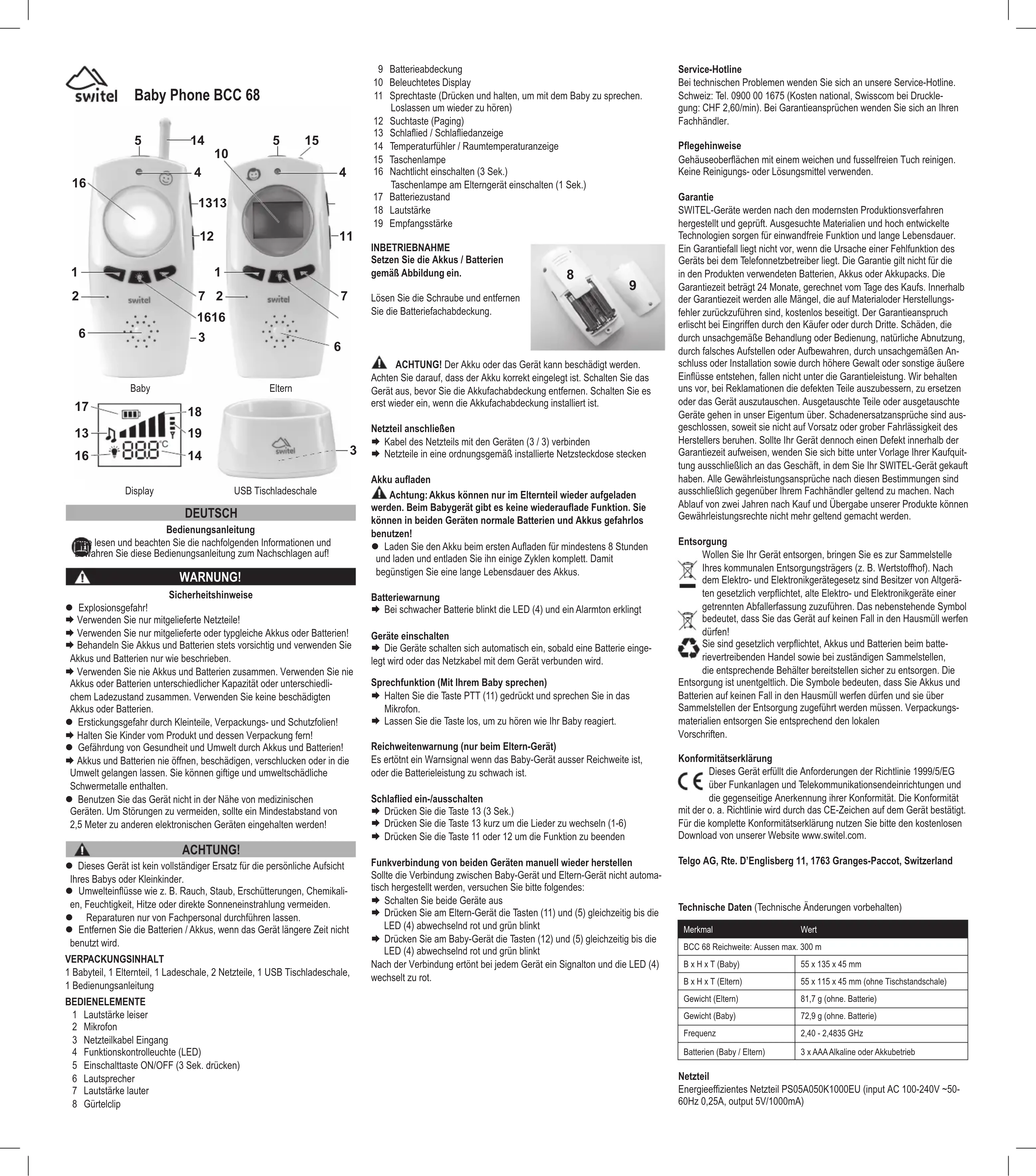 BBC 68 - Moniteurs pour bébé SWITEL - Notice d'utilisation et mode d'emploi gratuit
