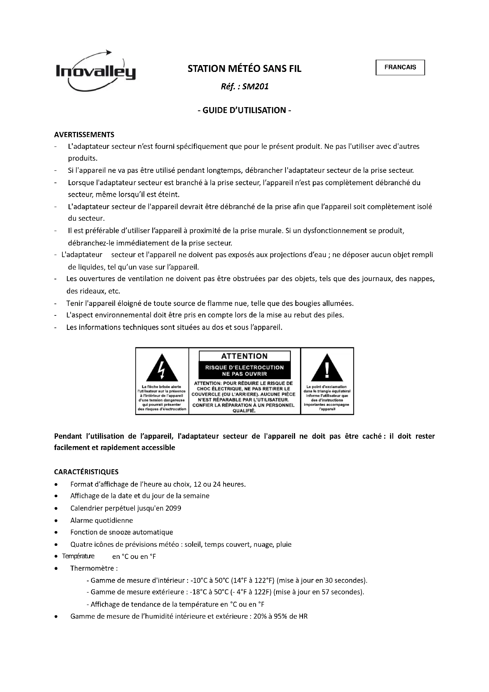 SM201 - Station Météo INOVALLEY - Notice d'utilisation et mode d'emploi gratuit
