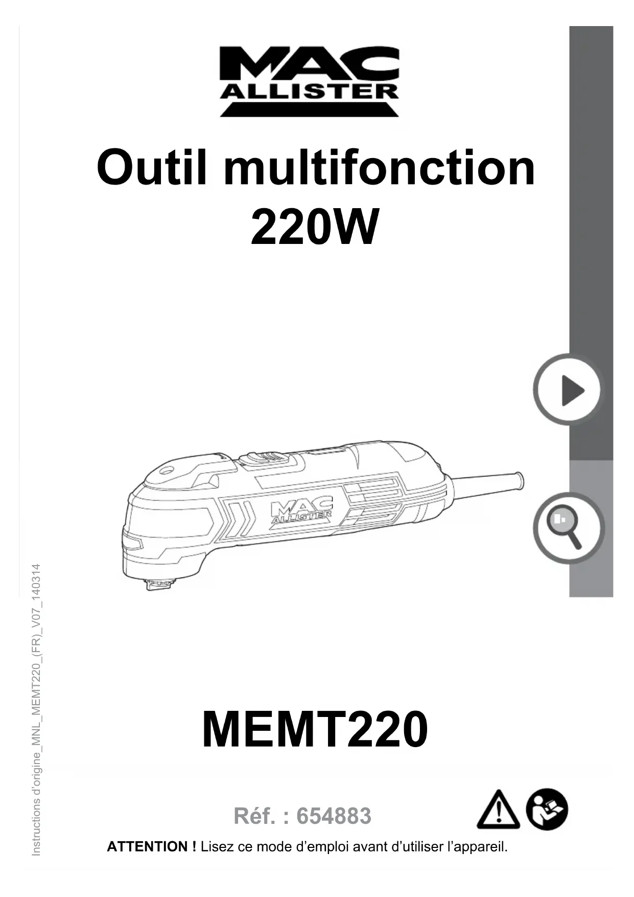MEMT220 - Outils multifonctions MAC ALLISTER - Notice d'utilisation et mode d'emploi gratuit
