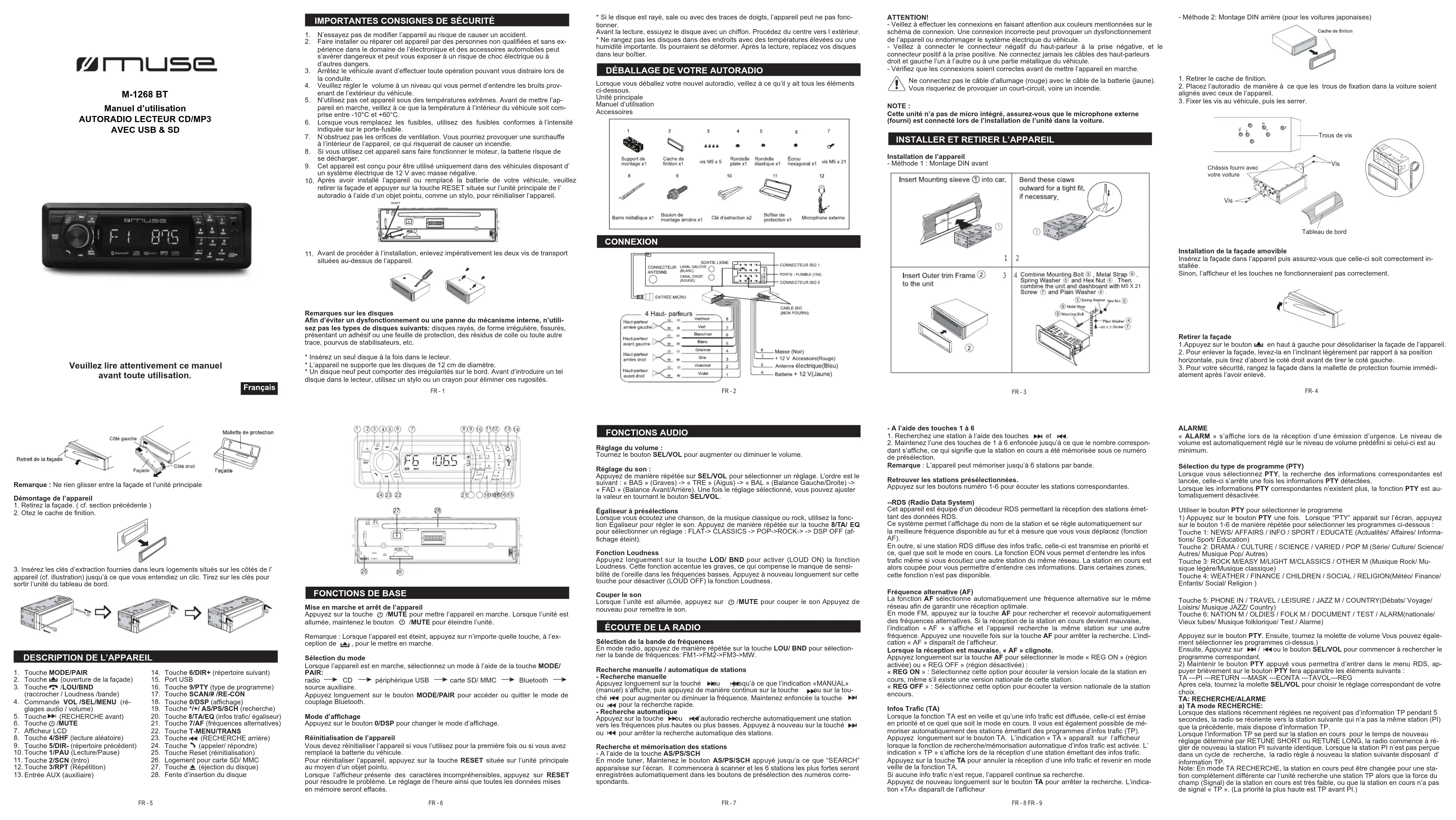 M1268 BT - Autoradio MUSE - Notice d'utilisation et mode d'emploi gratuit