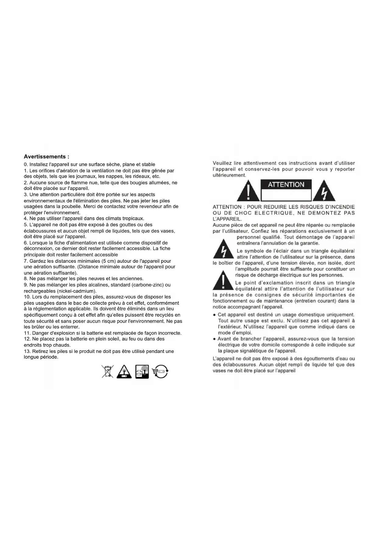 13. Retirez les piles si le produit ne doit pas être utilisé pendant une
