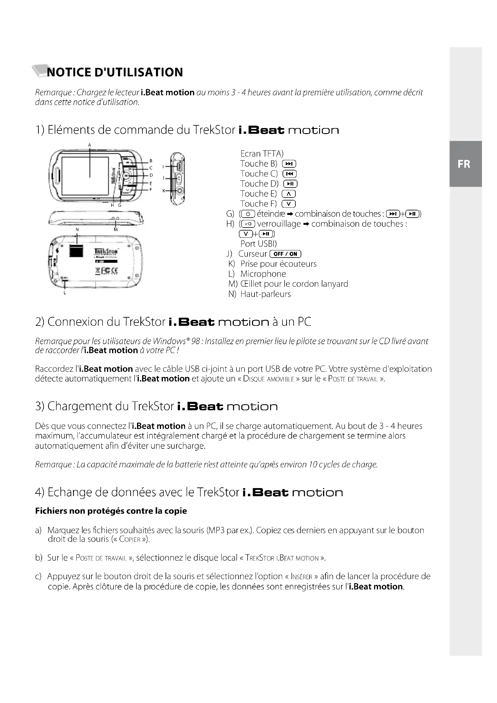 NOTICE D'UTILISATION Remarque : Chargez le lecteur i.Beat motion au moins 3 - 4 heures avant la première utilisation, comme décrit dans cette notice d’utilisation.