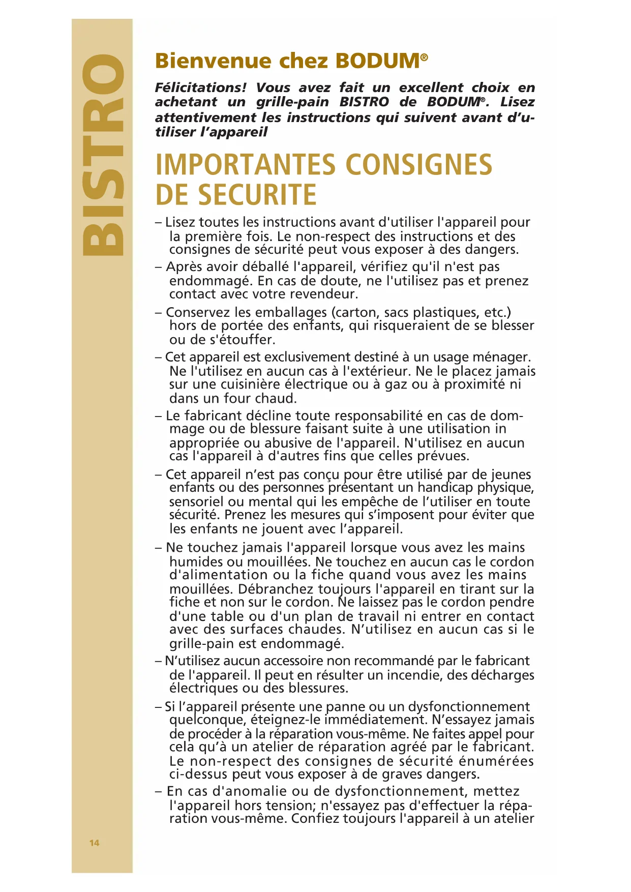 Félicitations! Vous avez fait un excellent choix en achetant un grille-pain BISTRO de BODUM