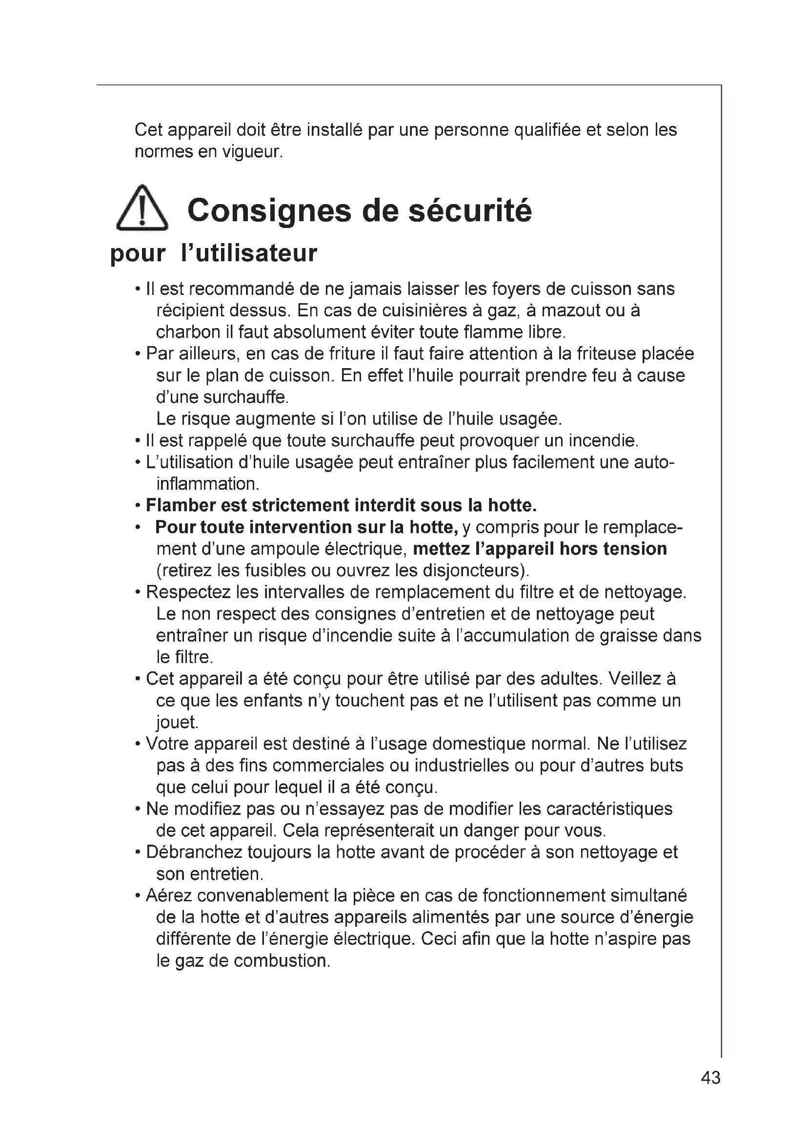 - Pour toute intervention sur la hotte, y compris pour le remplacement d'une ampoule électrique, mettez l'appareil hors tension (retirez les fusibles ou ouvre les disjoncteurs).