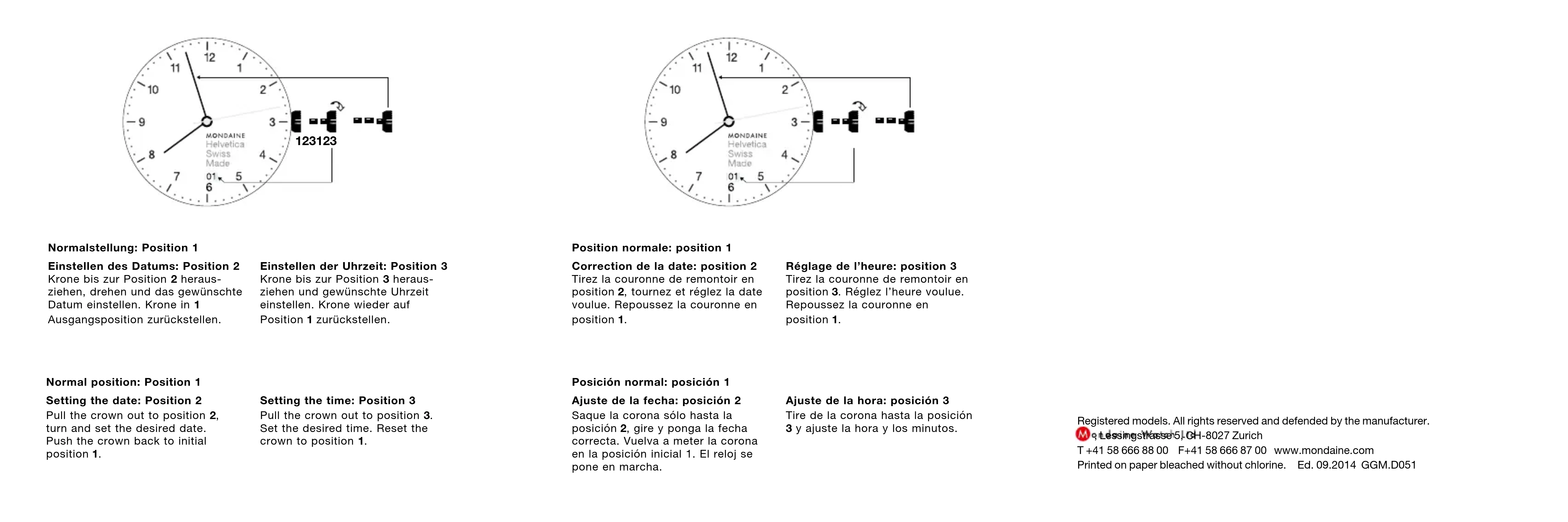 MODE D'EMPLOI Helvetica GGM.D051 Mondaine