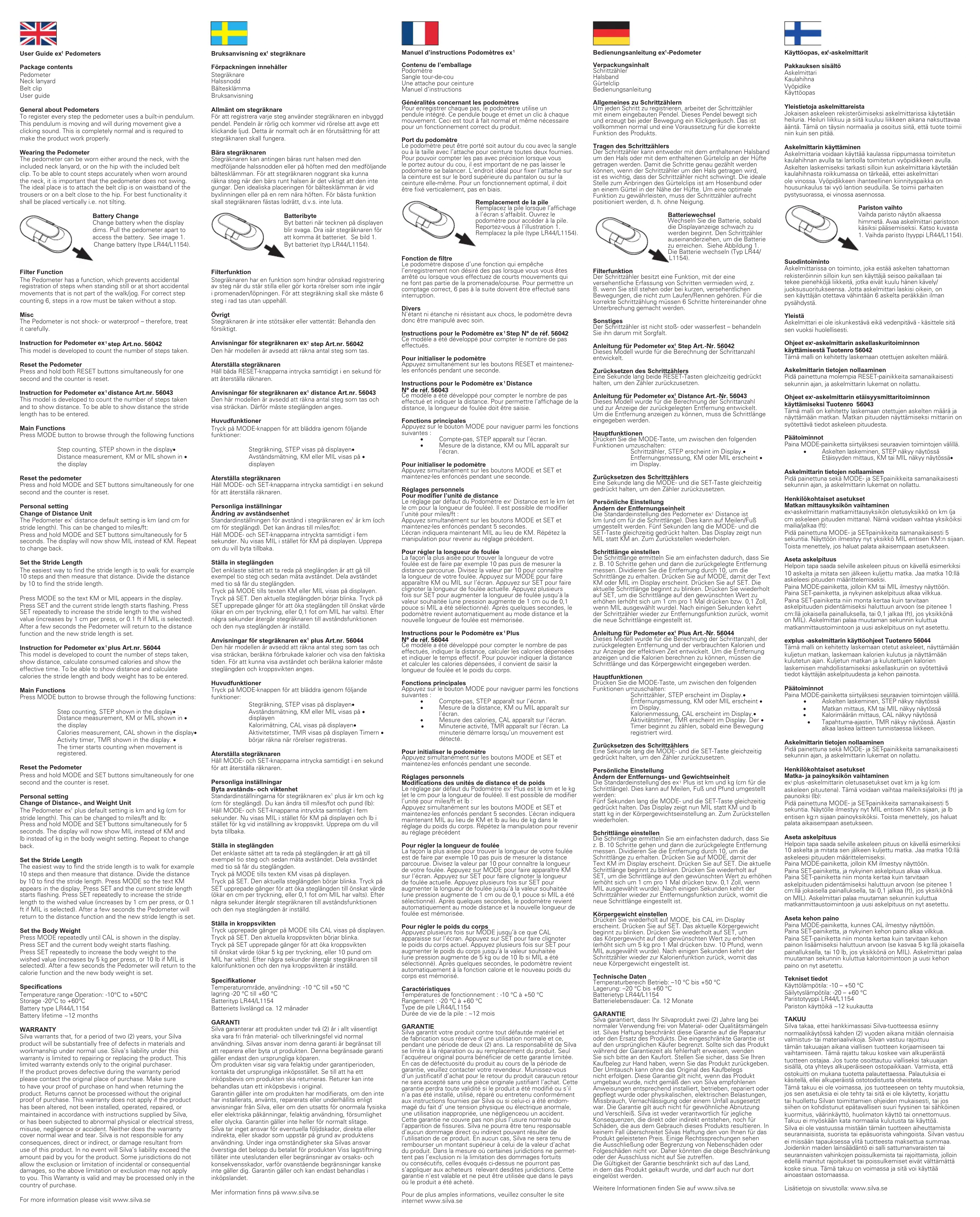 Ex1 - Podomètre SILVA - Notice d'utilisation et mode d'emploi gratuit