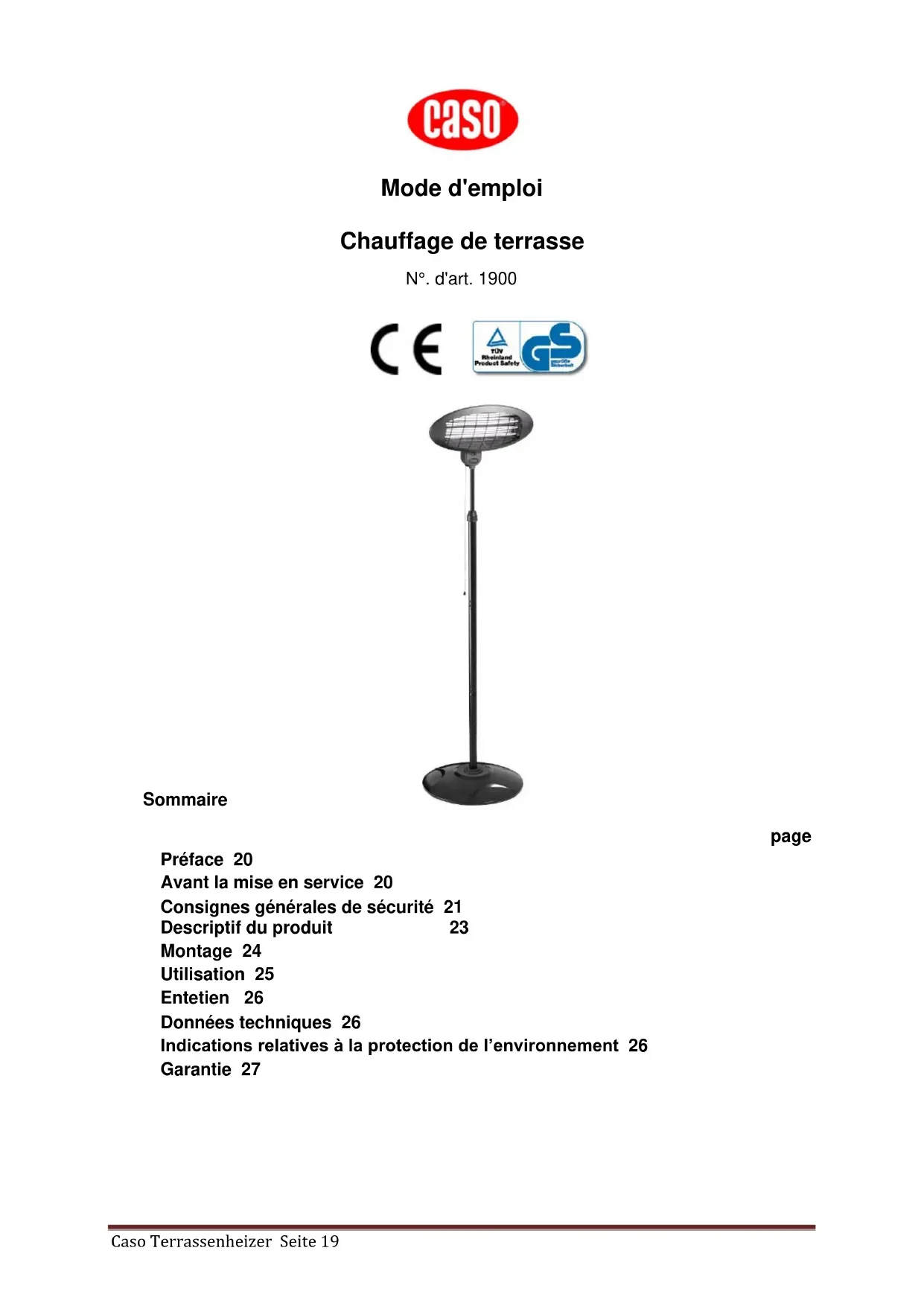 1900 - Chauffage CASO - Notice d'utilisation et mode d'emploi gratuit