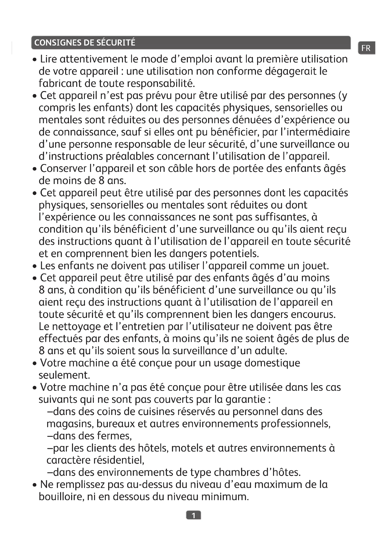 - Lagarantiecouvrelesdéfautsdefabricationetl’usagedomestiqueuniquement.Toutecasseou détériorationrésultantdunonrespectdesinstructionsd’utilisationn’entrepasdanslecadrede lagarantie. FR4