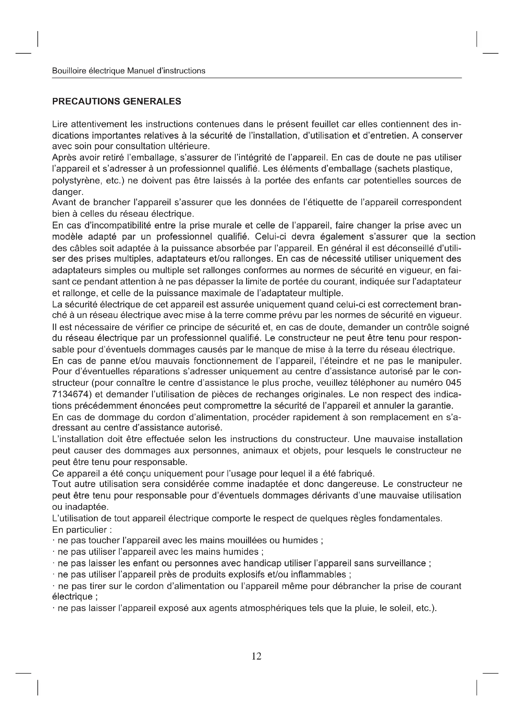 En cas de panne et/ou mauvais fonctionnement de l'appareil, l'éteindre et ne pas le manipuler. Pour d'éventuelles réparations s'adresser uniquement au centre d'assistance autorisé par le constructeur (pour connaître le centre d'assistance le plus proche, veuillez téléphoner au numéro 045 7134674) et demander l'utilisation de pièces de rechanges originales. Le non respect des indications précédemment énoncées peut compromettre la sécurité de l'appareil et annuler la garantie.