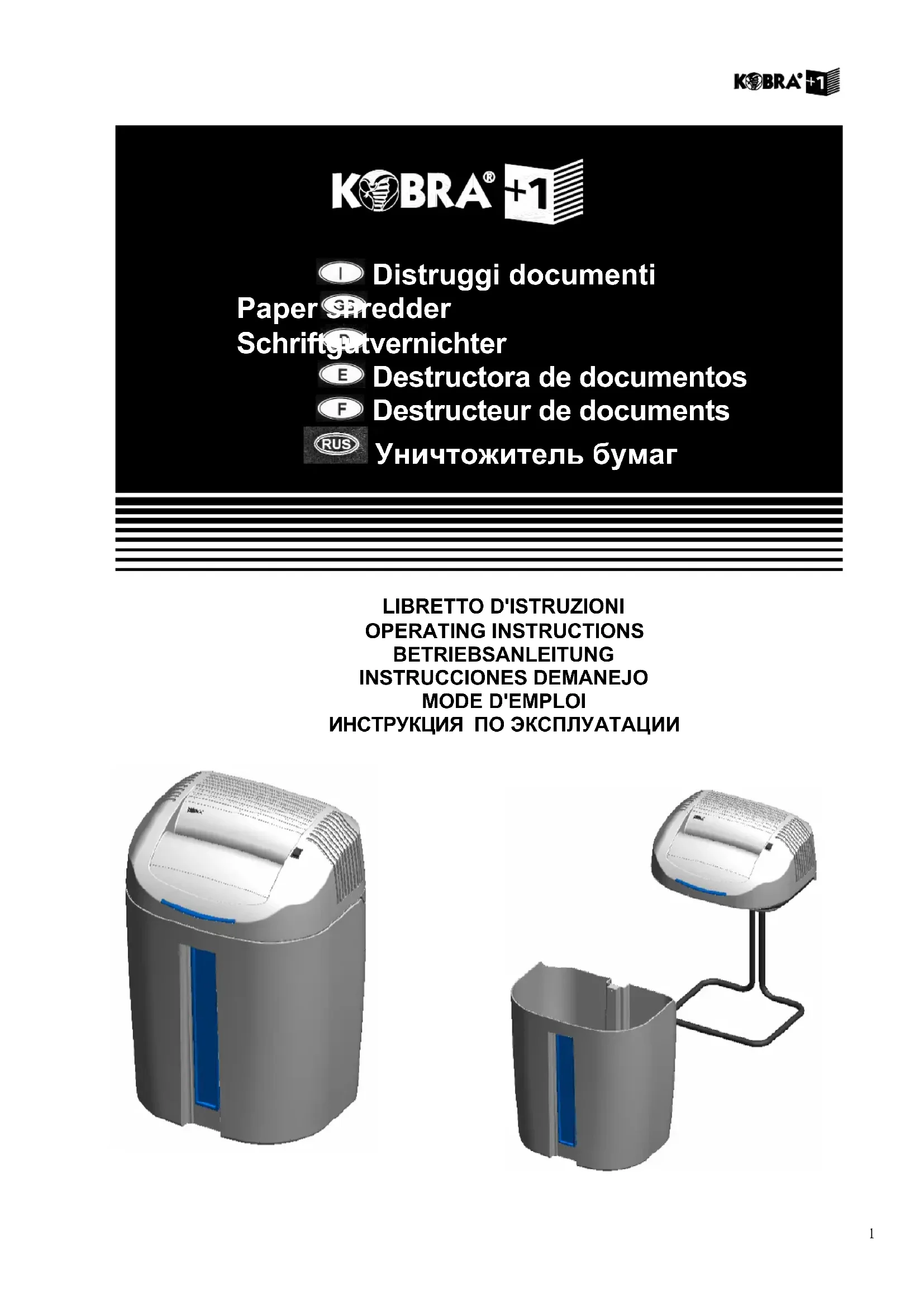 +1 SS7 - Destructeur de document Kobra - Notice d'utilisation et mode d'emploi gratuit