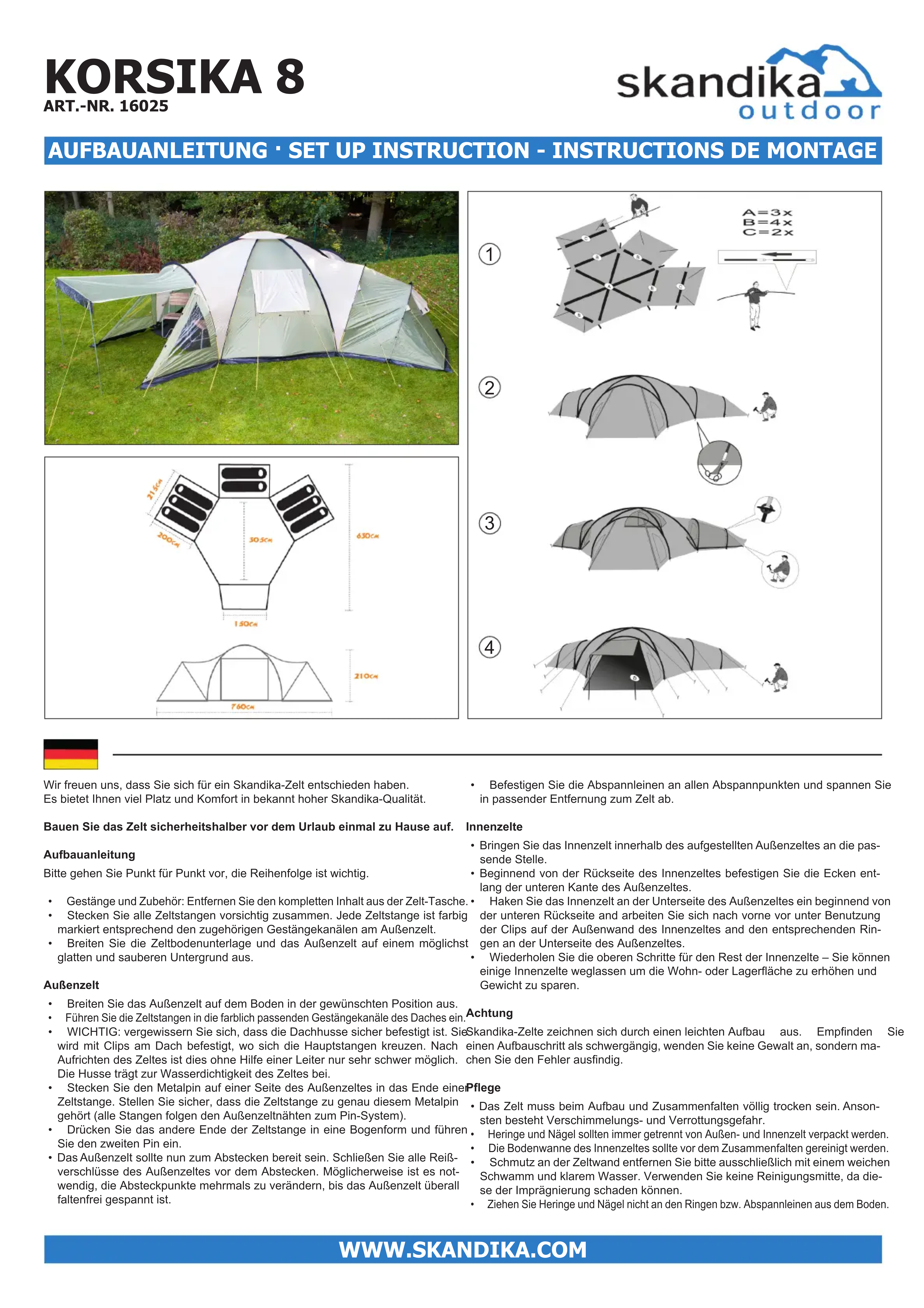 Nous nous réjouissons que vous ayez choisi une tente SKANDIKA. Ces tentes offrent beaucoup d'espace et de comfort et ceci en qualité supérieure marque Skandika.