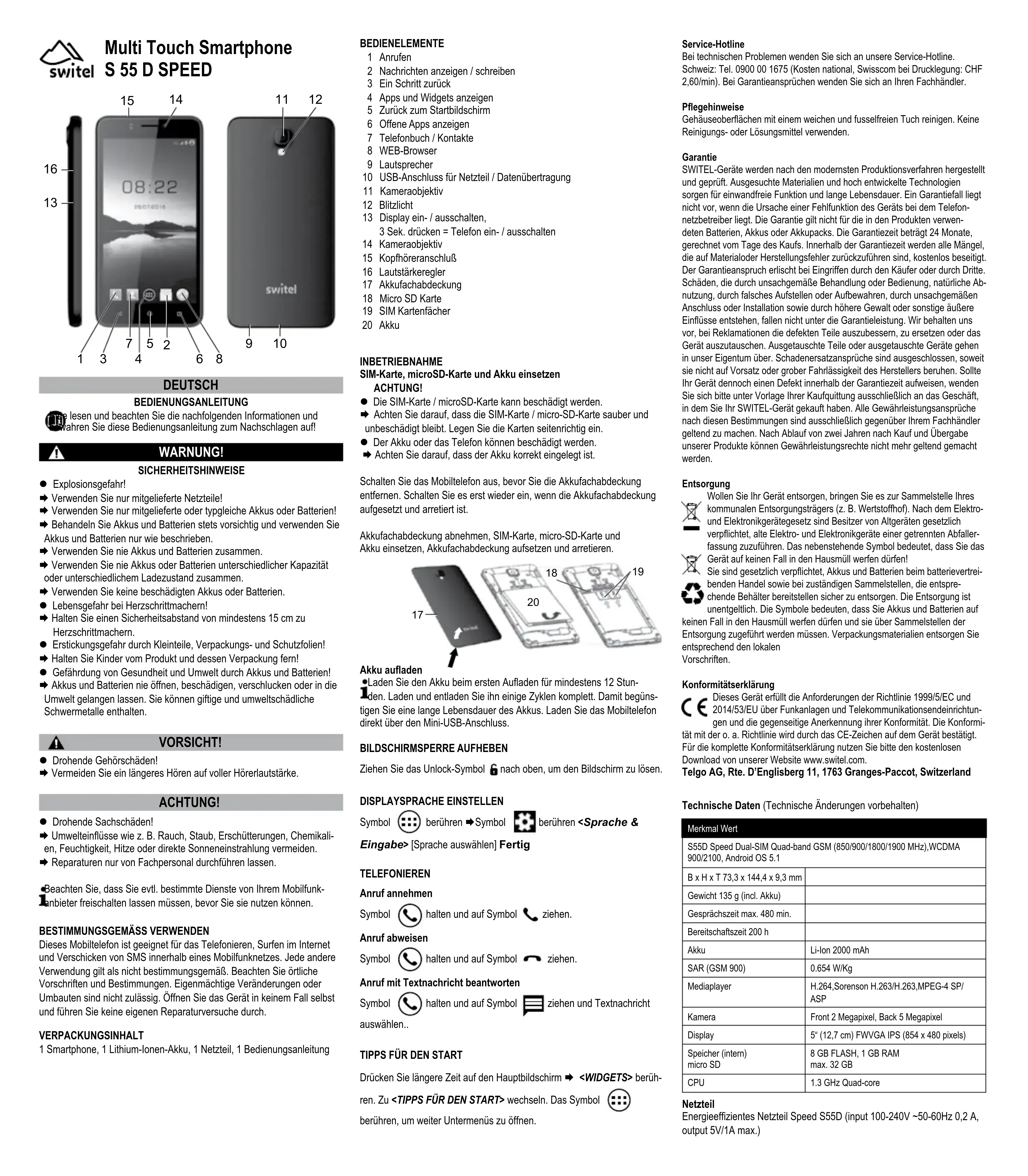 Speed S55D - Smartphone SWITEL - Notice d'utilisation et mode d'emploi gratuit