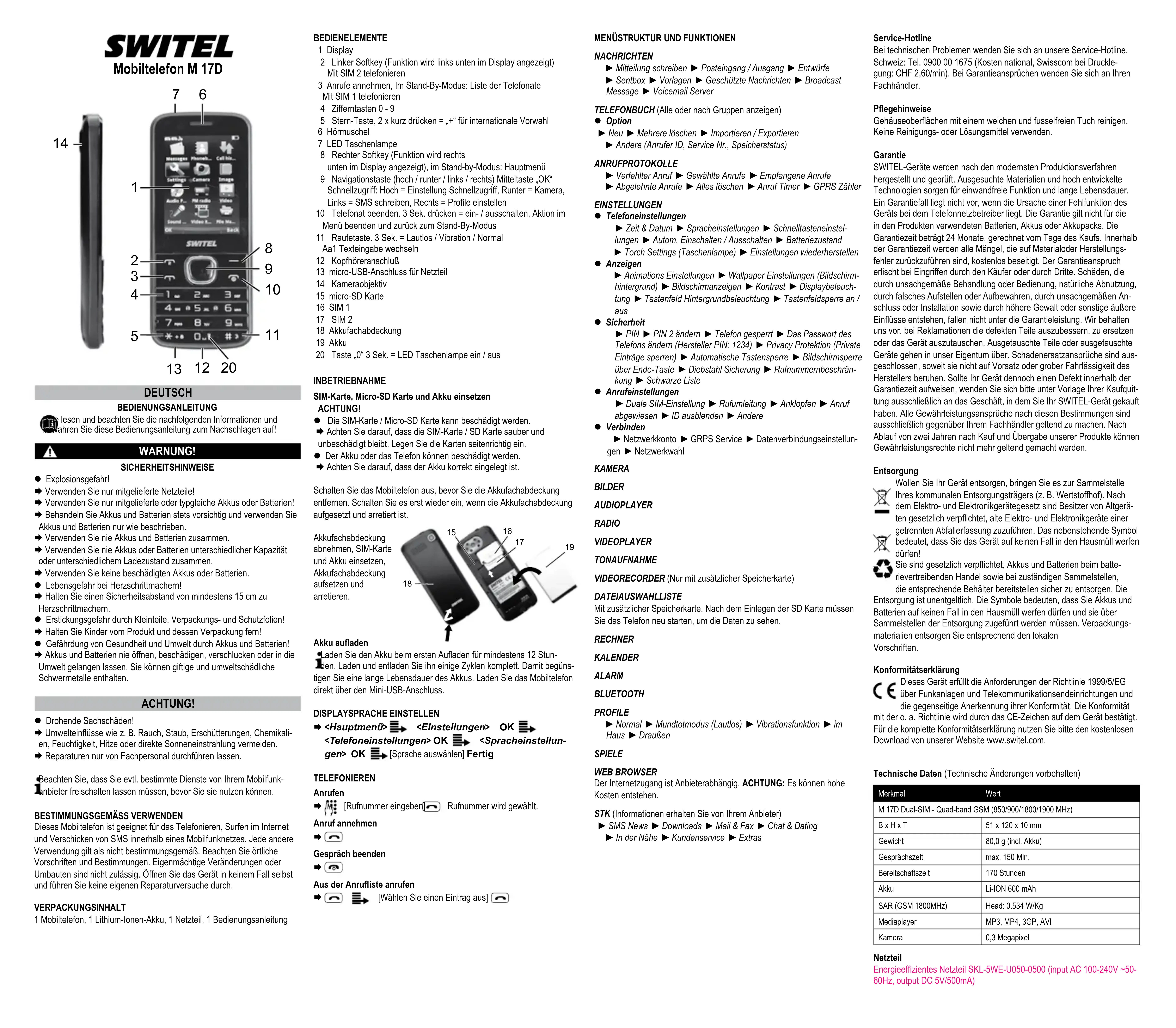 Retrouvez gratuitement la notice de l'appareil M17D SWITEL au format PDF.