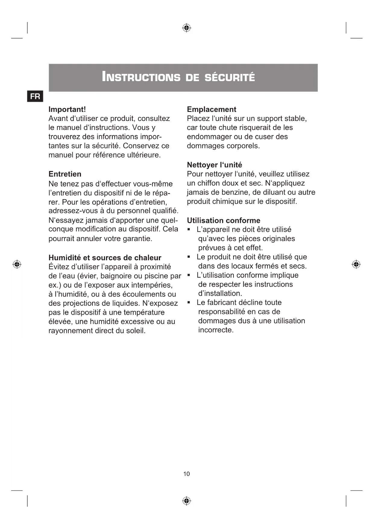 Le produit ne doit etre utilise que dans des locaux fermes et secs.