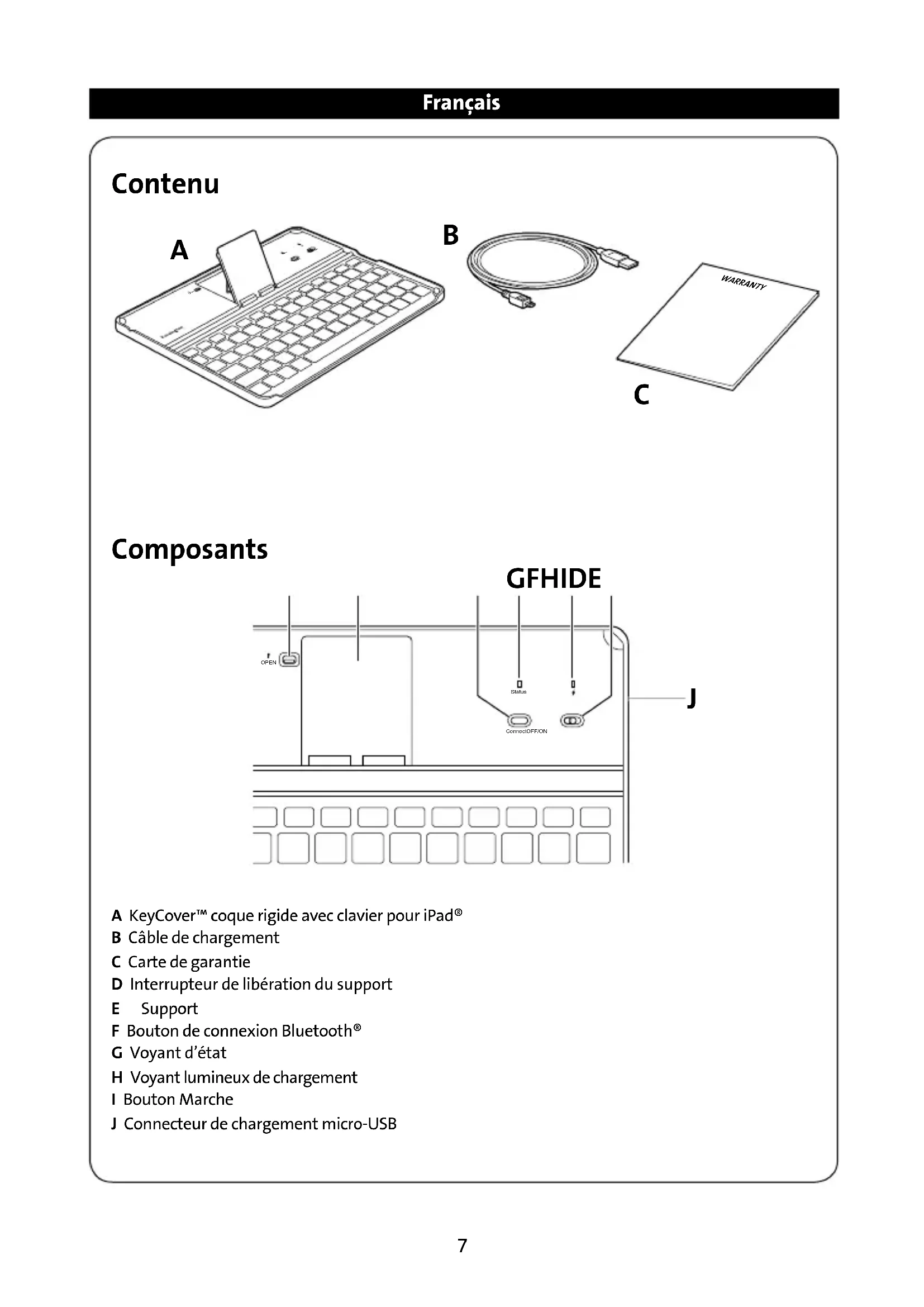 Vous ne doivent pas réparer vous-même votre KeyCover. Ne pas tenter de modifier, d'ouvir ou de réparer le produit.