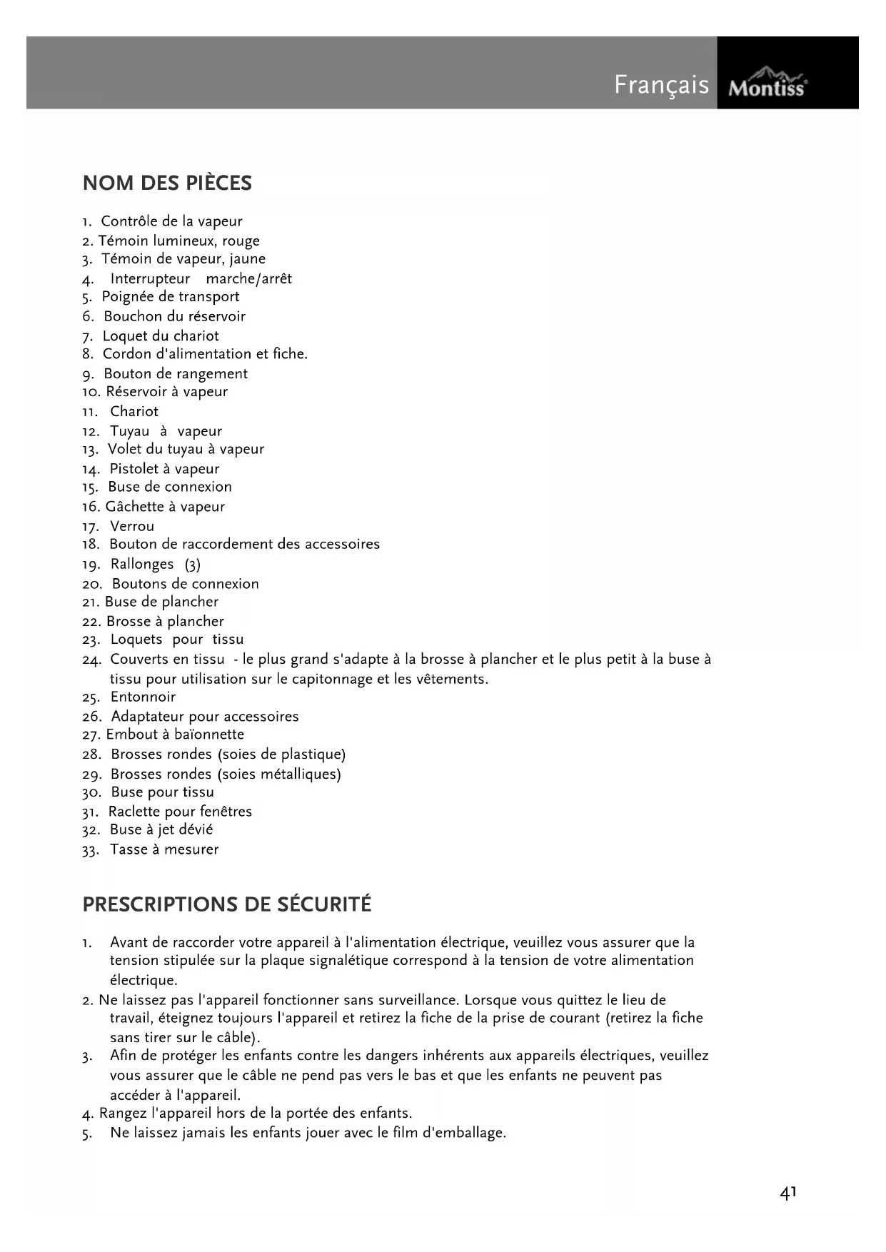 CSC5623M - Nettoyeur à vapeur Montiss - Notice d'utilisation et mode d'emploi gratuit