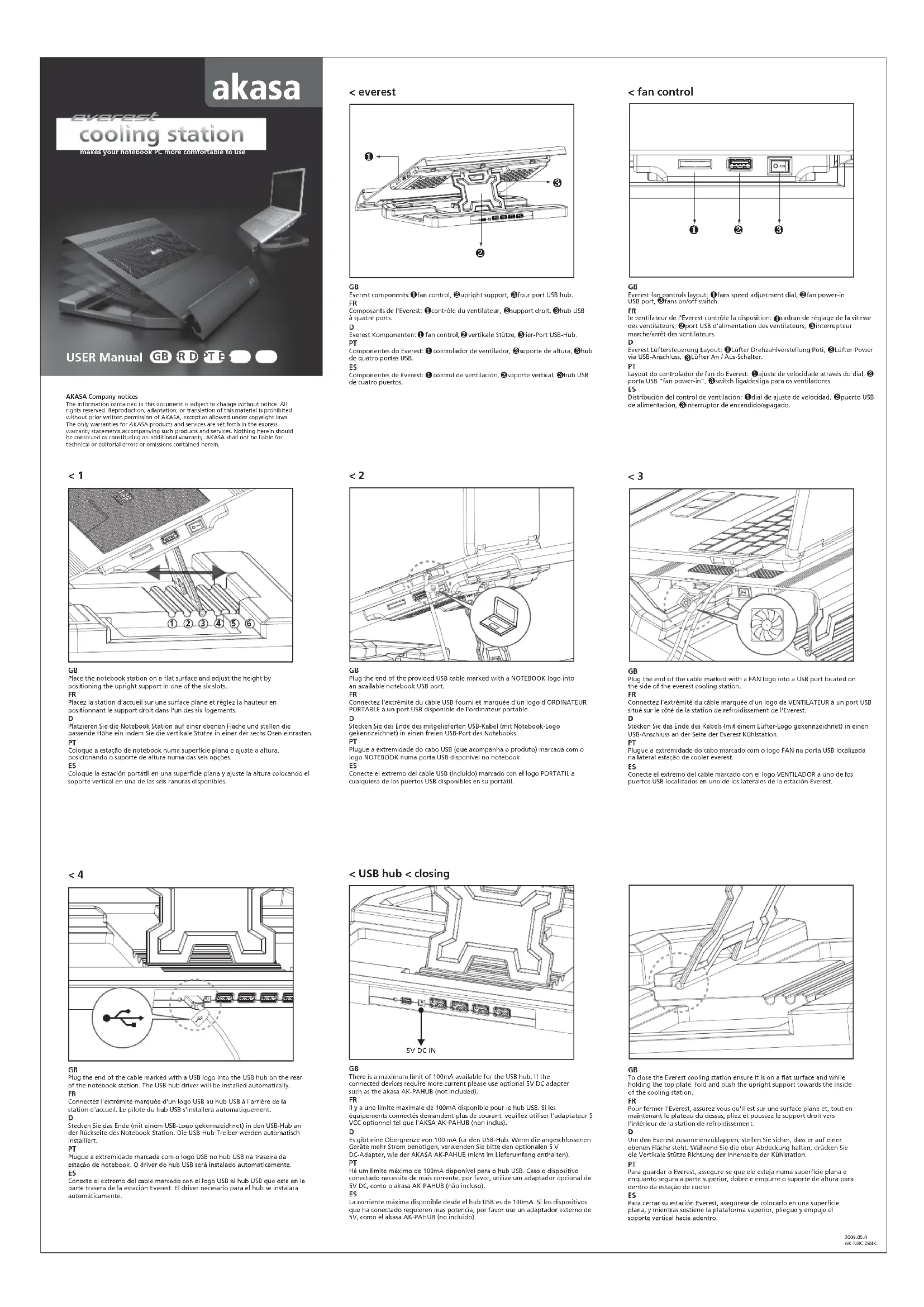 Everest AKNBC09BK - Système de refroidissement pour ordinateur portable AKASA - Notice d'utilisation et mode d'emploi gratuit