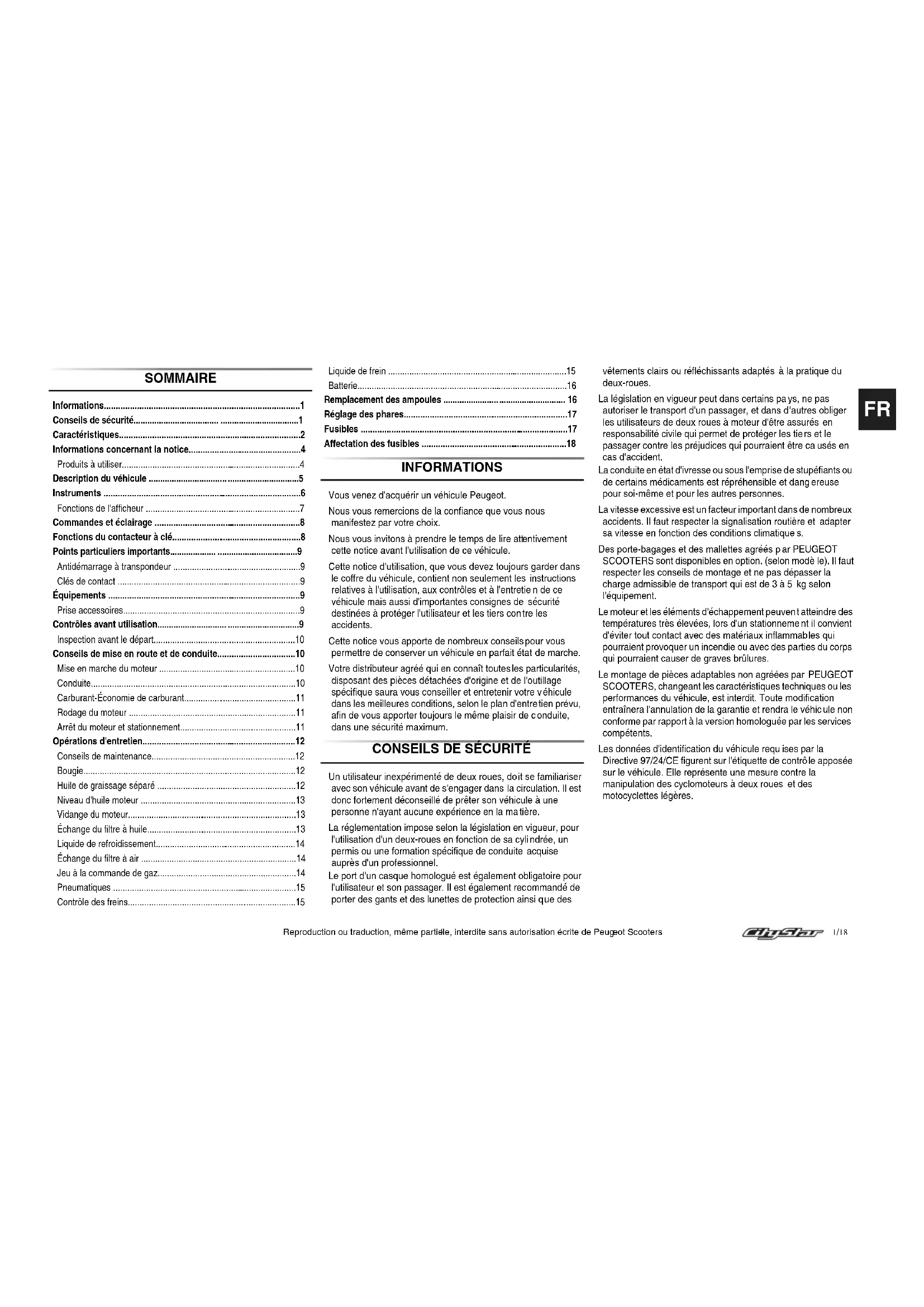 Reproduction ou traduction, même partielle, interdite sans autorisation écrite de Peugeot Scooters 9/18