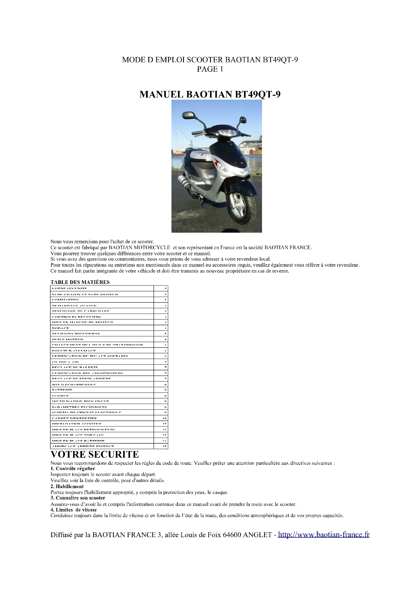 Diffusé par la BAOTIAN FRANCE 3, allée Louis de Foix 64600 ANGLET - http://www.baotian-france.fr