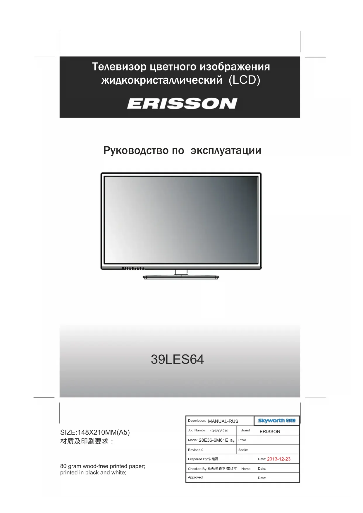 Retrouvez gratuitement la notice de l'appareil 39LES64 Erisson au format PDF.