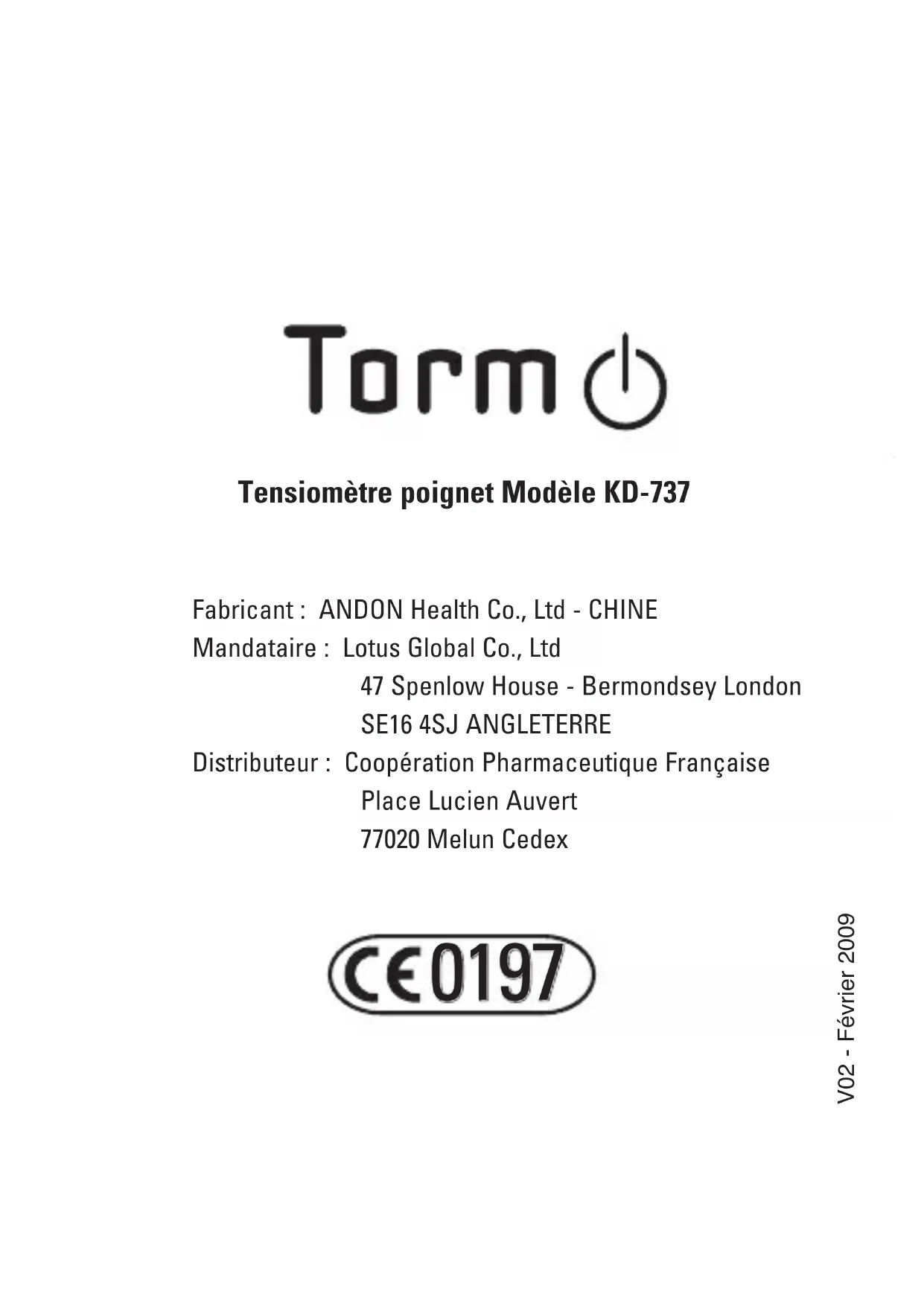 KD737 - Tensiomètre TORM - Notice d'utilisation et mode d'emploi gratuit