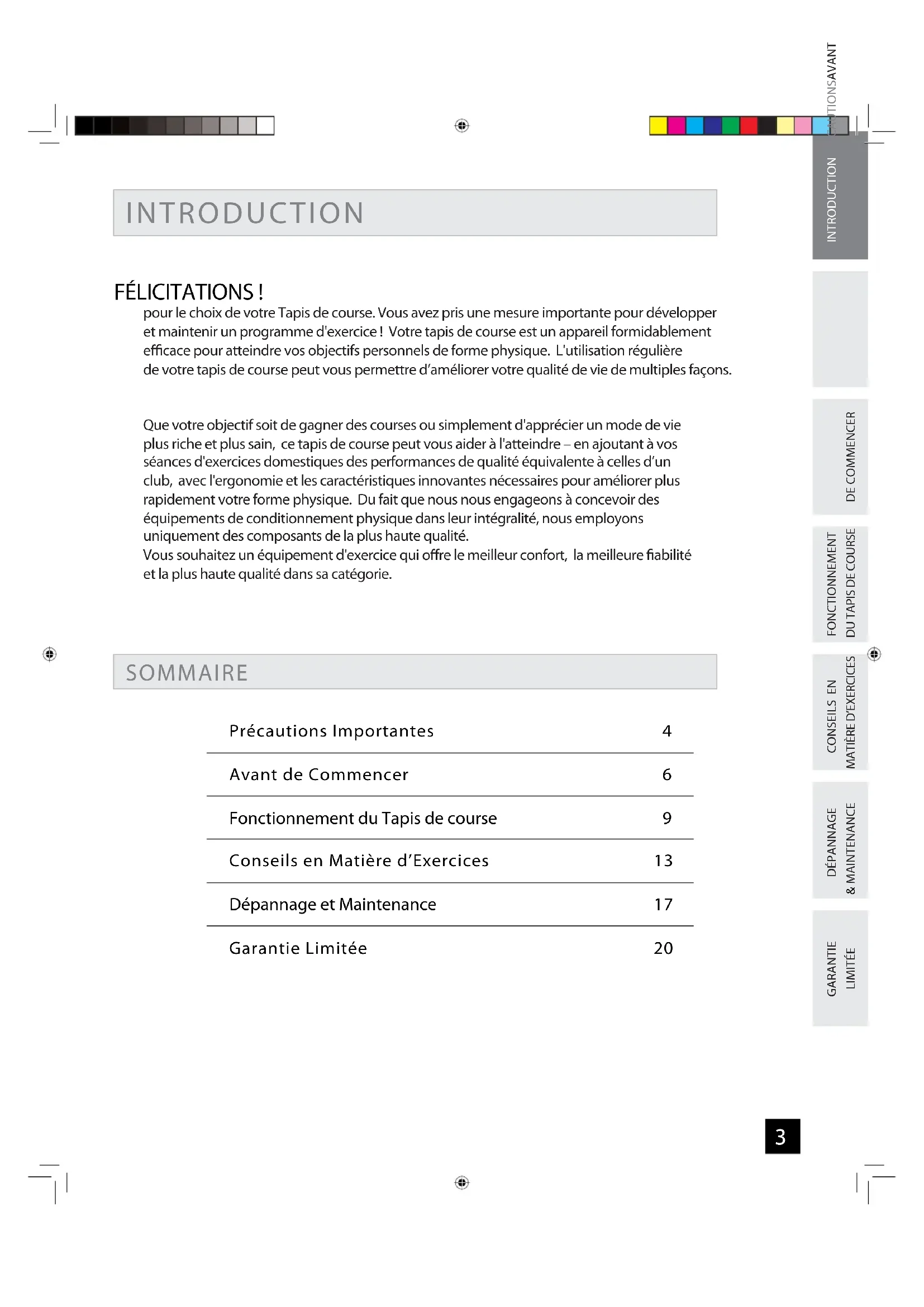 pour le choix de votre Tapis de course. Vous avez pris une mesure importante pour développer et maintenir un programme d'exercice! Votre tapis de course est un appareil formidablement efficace pour atteindre vos objectifs personnels de forme physique. L'utilisation régulière de la tapis de course peut vous permettre d'améliorer votre qualité de vie de multiples façons.