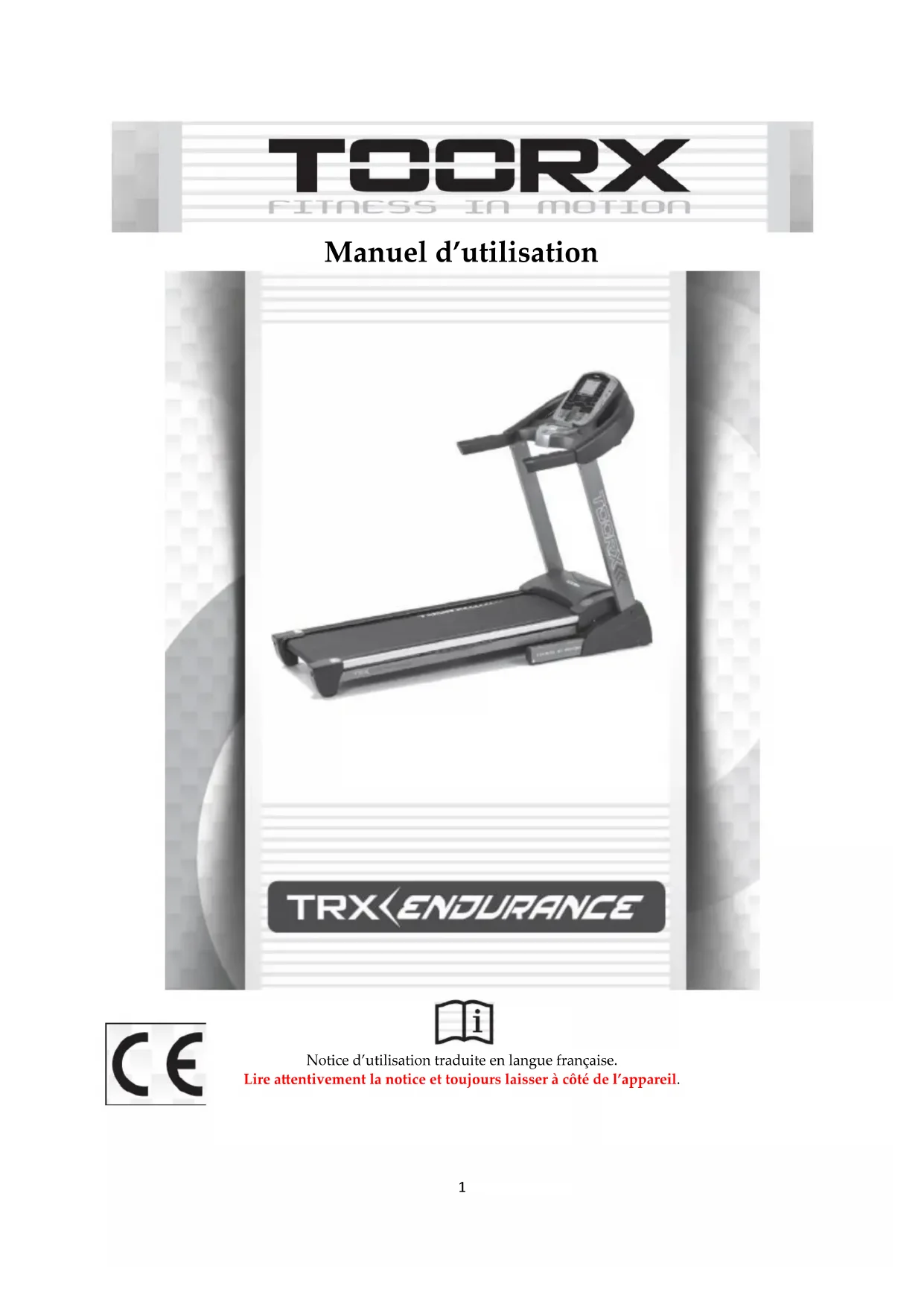 TRX Endurance - Tapis de course Toorx - Notice d'utilisation et mode d'emploi gratuit