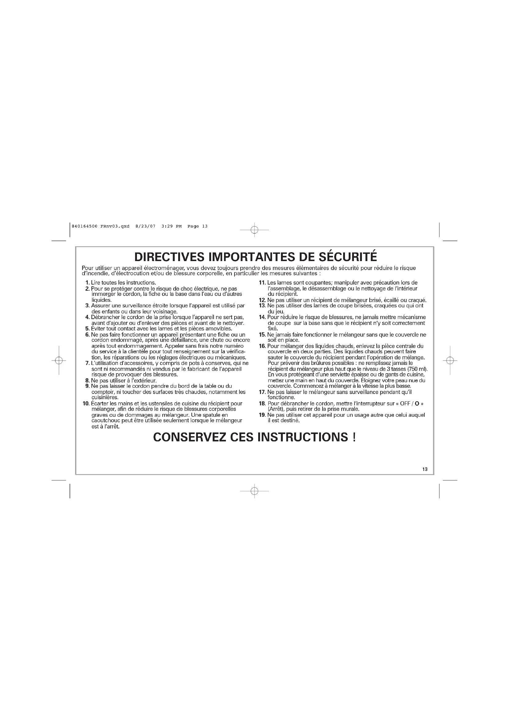 840164500 FRnv03.qxd 8/27/07 11:00 AM Page 1819 Utilisation de votre mélangeur