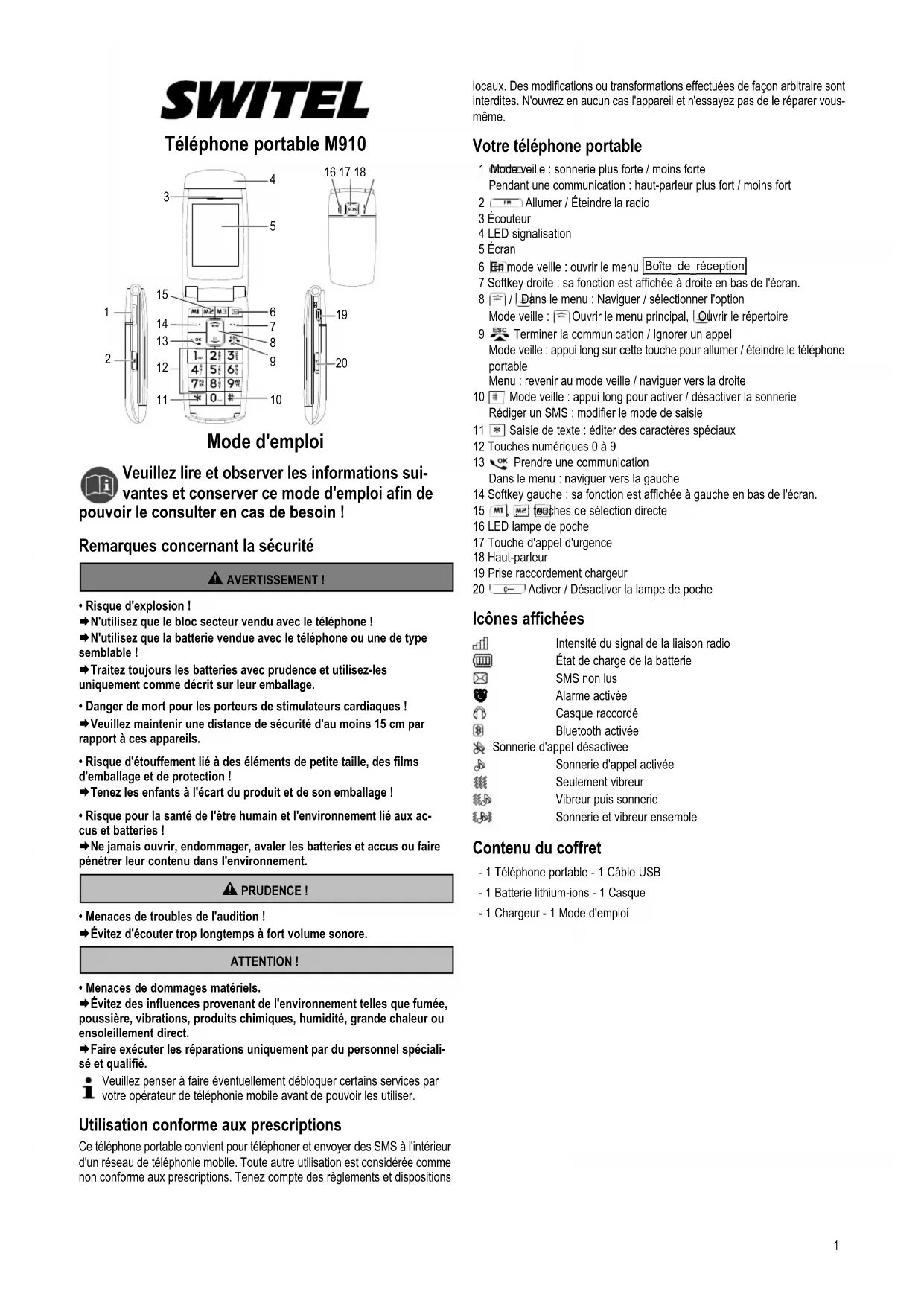 MODE D'EMPLOI M910 SWITEL