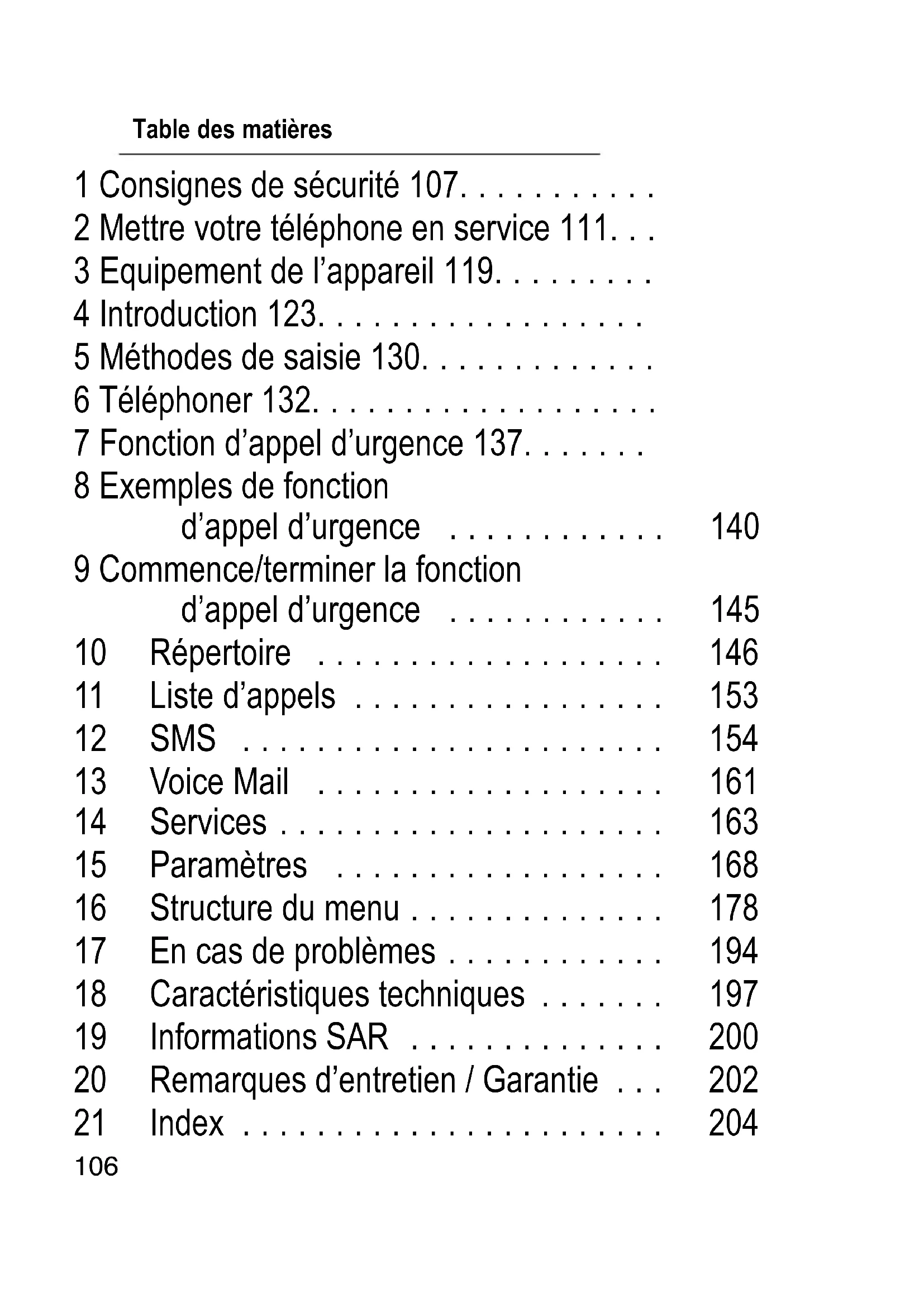 1 Consignes de sécurité 107.