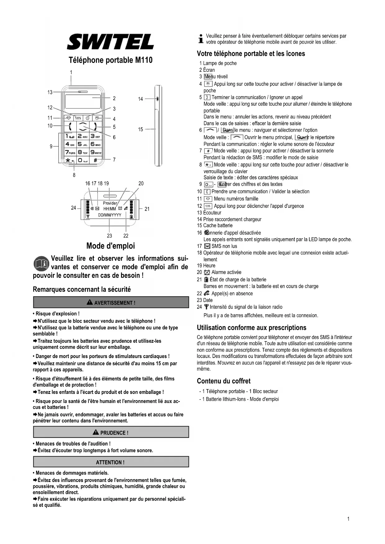 MODE D'EMPLOI M110 SWITEL