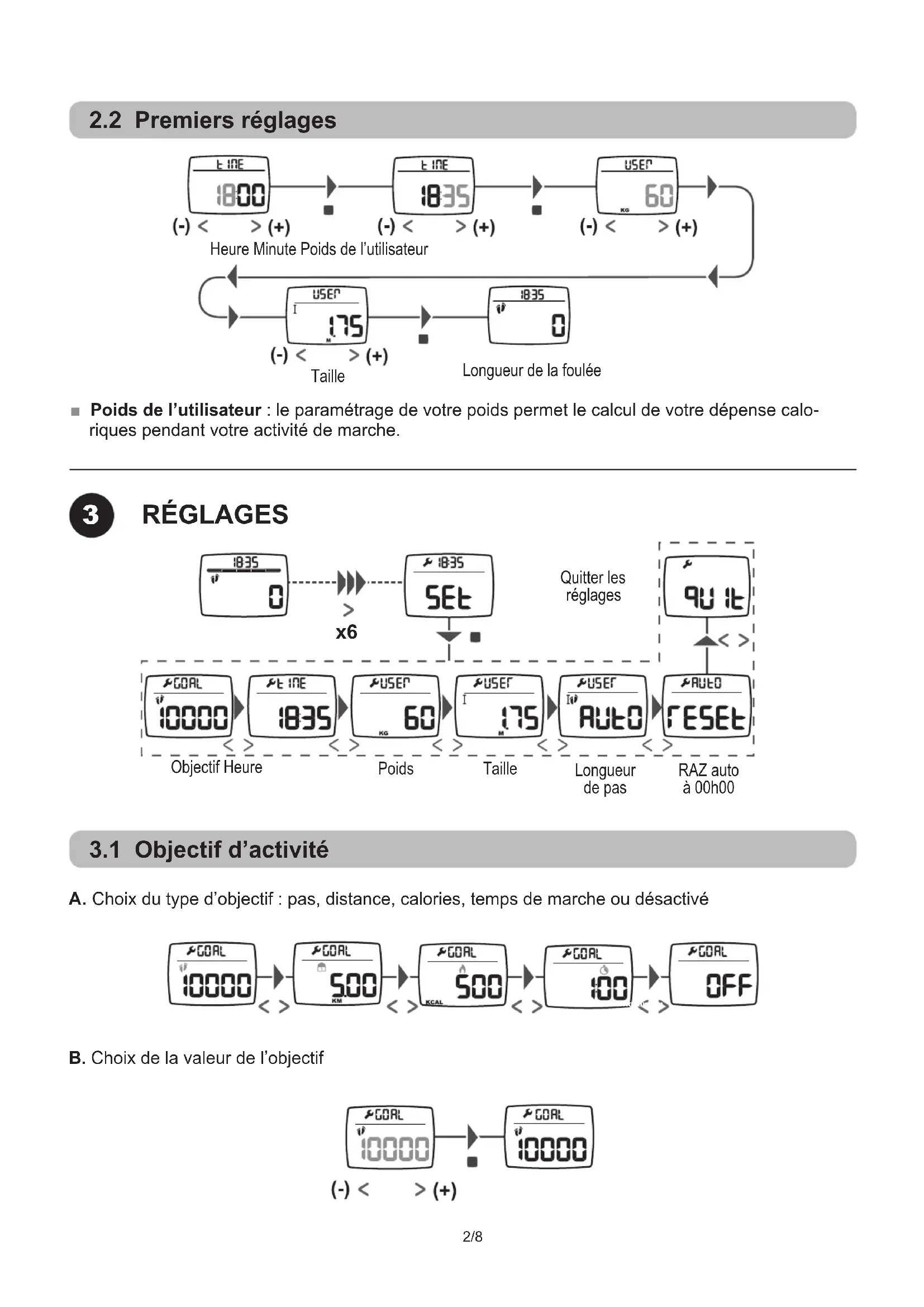 2/8 Taille Heure Minute Poids de l’utilisateur