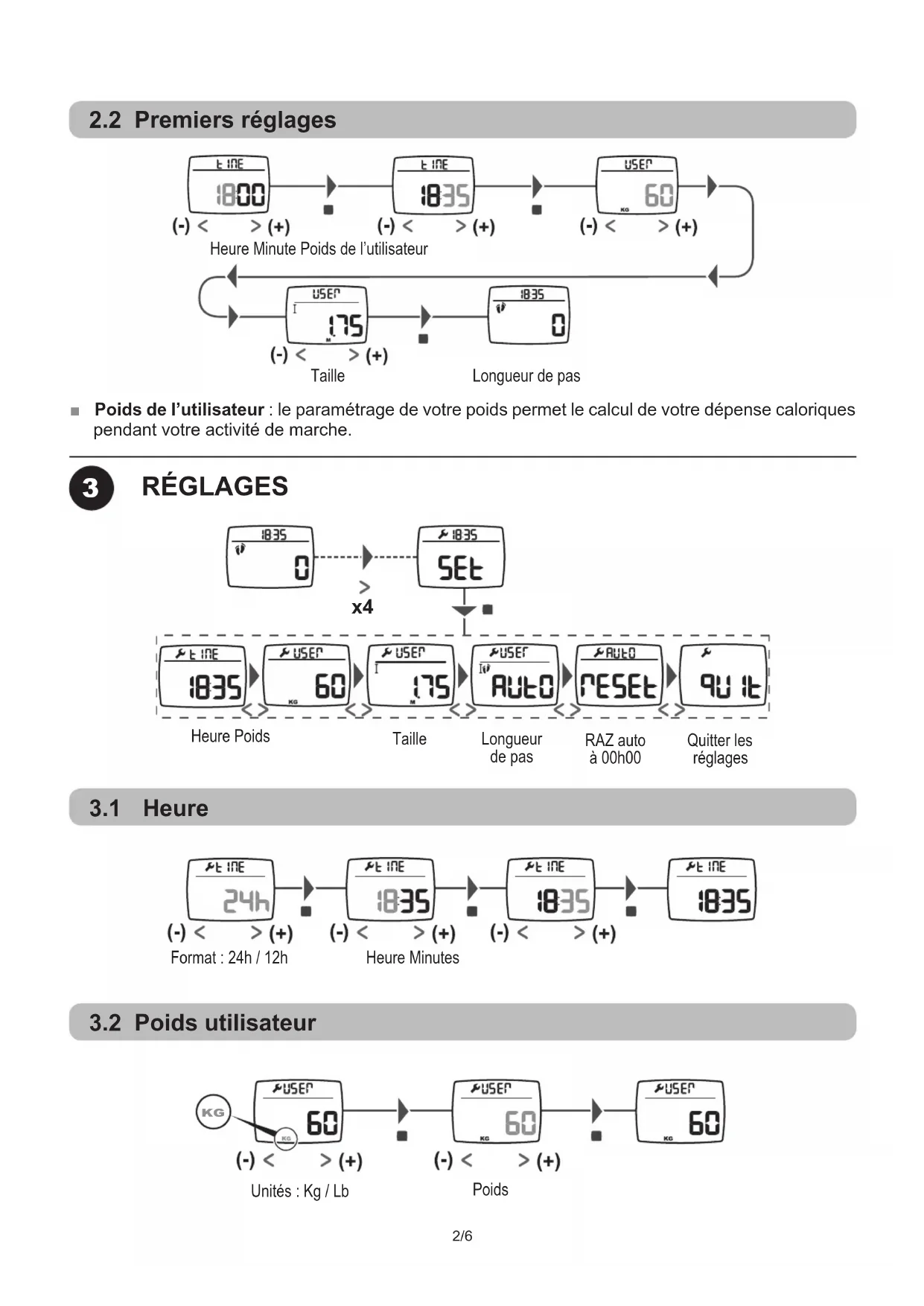 2/6 Taille Heure Minute Poids de l’utilisateur