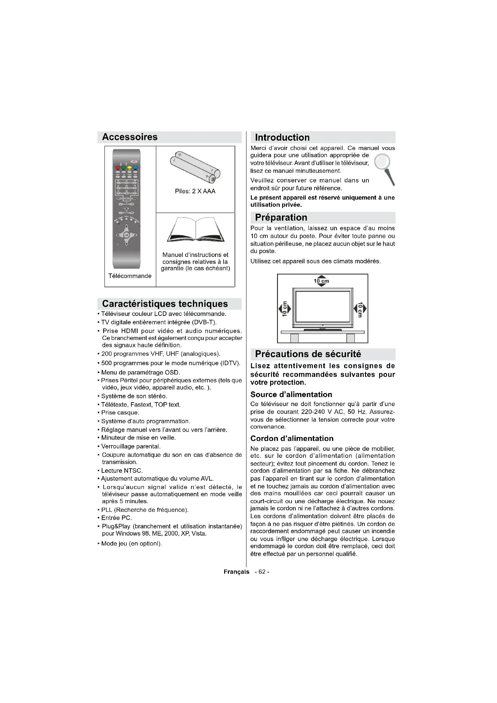 Précautions de sécurité 62