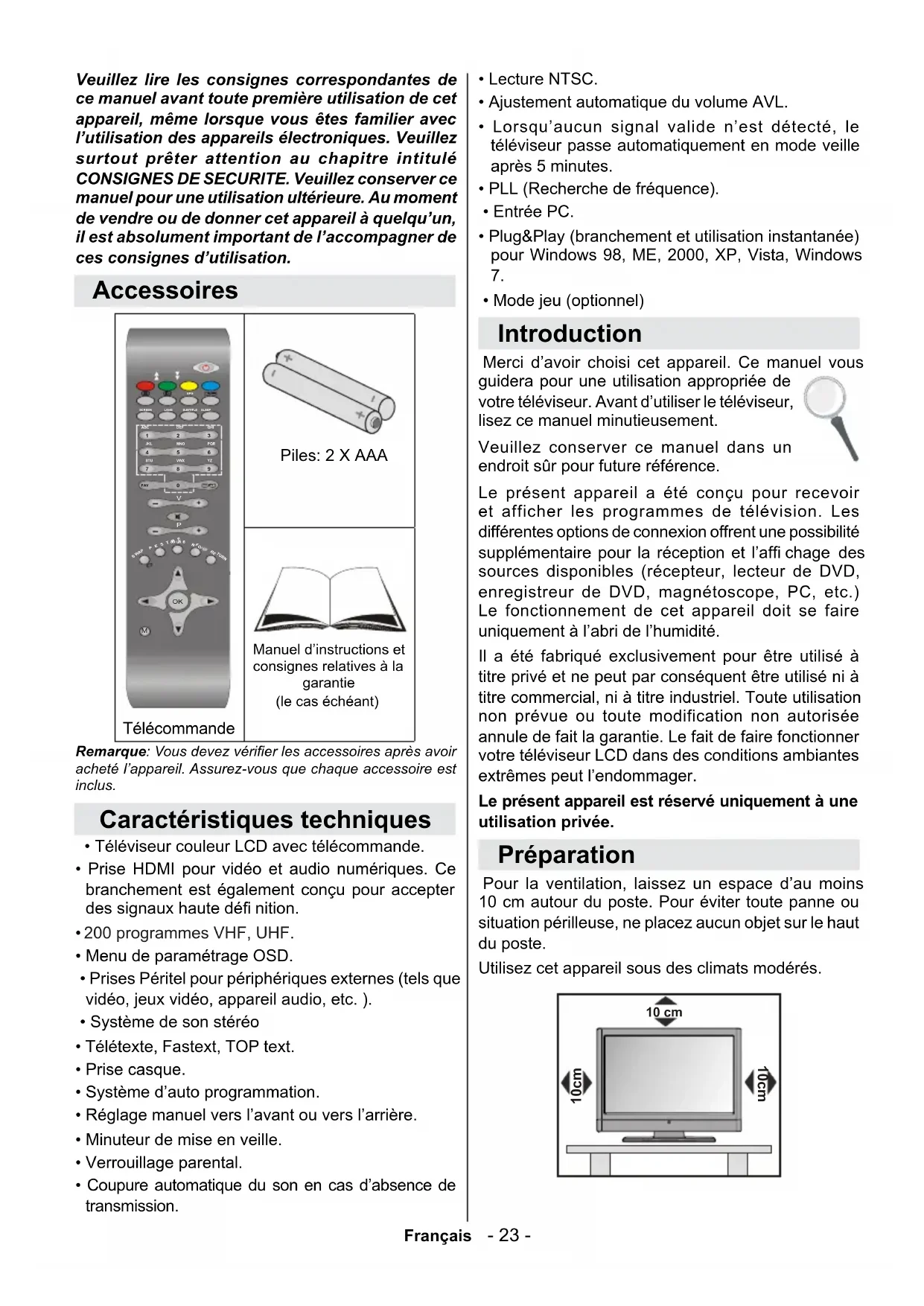 Veuillez dire les consignes correspondantes de ce manuel avant toute première utilisation de cet apparéil, même lorsque vous étés familier avec l'utilisation des apparéils électroniques. VeuillezURTout préter attention au chapitre intitulé CONSIGNES DE SECURITE. Veuillez conserver ce manuel pour une utilisation ultérieure. Au moment de vendre ou de donner cet apparéil à quelqu'un, il est absolument important de l'accompagner de ces consignes d'utilisation.