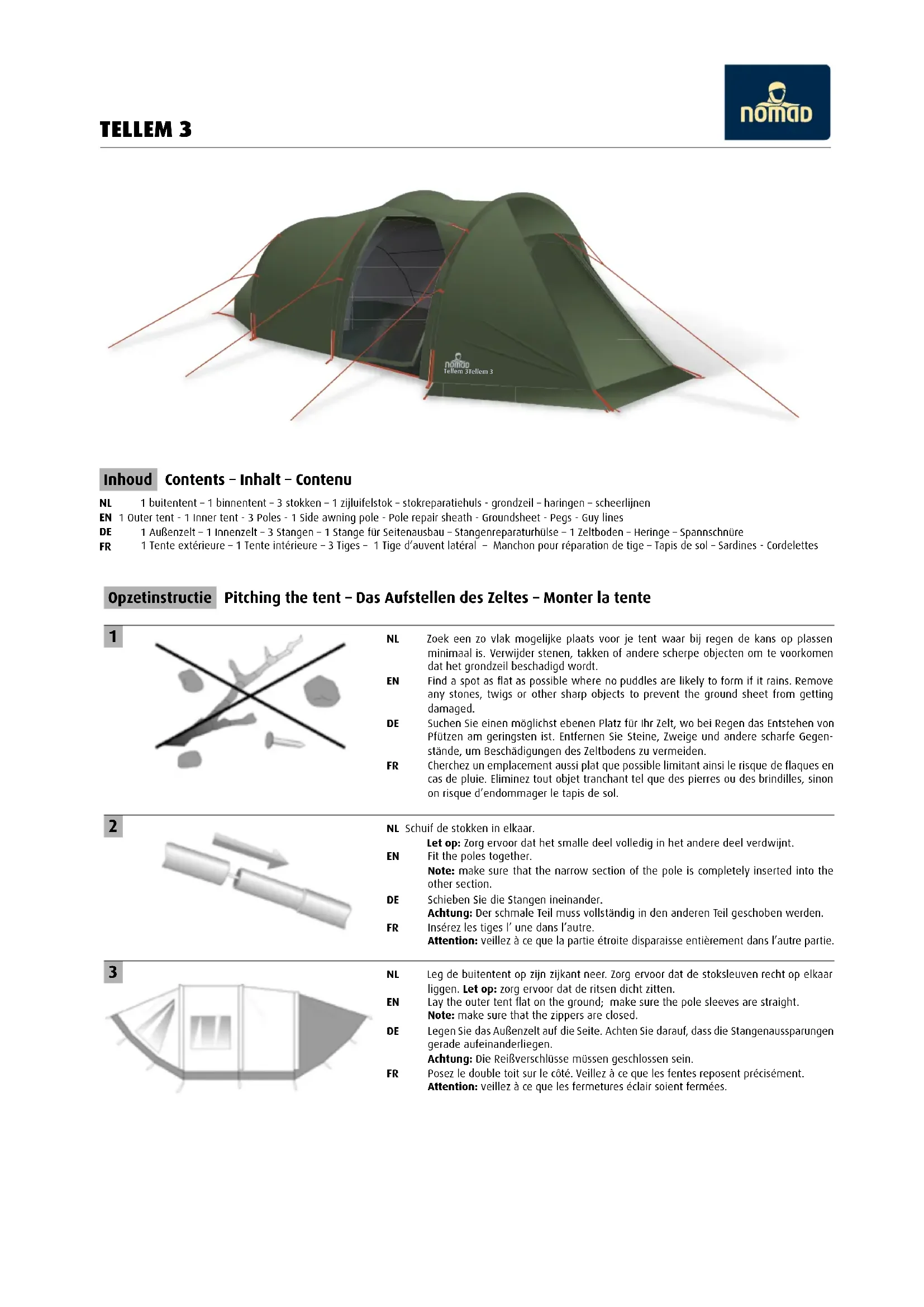 Téléchargez la notice de votre Tente au format PDF gratuitement ! Retrouvez votre notice Tellem 3 - Nomad et reprennez votre appareil électronique en main. Sur cette page sont publiés tous les documents nécessaires à l'utilisation de votre appareil Tellem 3 de la marque Nomad.