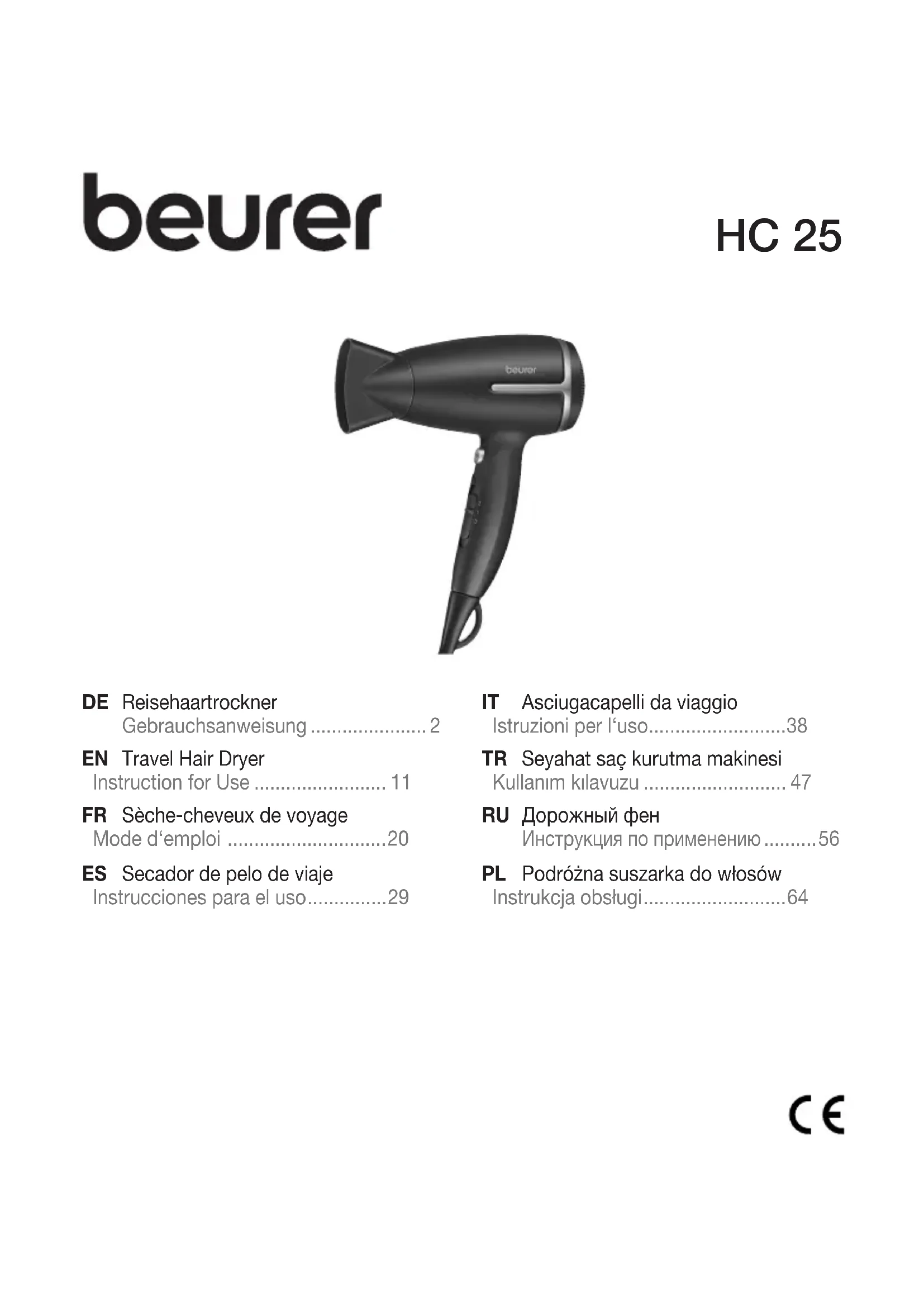HC 25 - Sèche-cheveux BEURER - Notice d'utilisation et mode d'emploi gratuit
