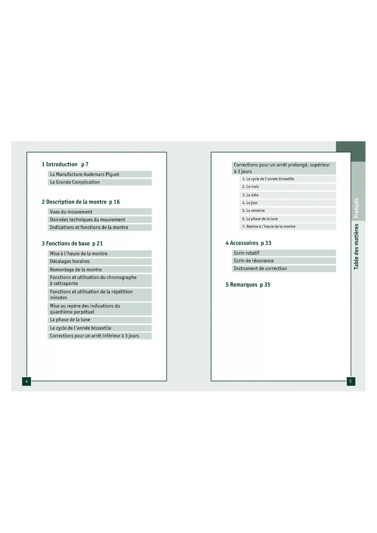 La Grande Complication d'Audemars Piguet? C'est, au départ, sur l'établi de l'horloger, un gigantesque puzzle de 648 composants écarts. Puis interviennent la patience, la précision etURT le savoir-faire de l'artisan. De ses gestes nait un chef-d'oeuvre dont le ceur va batten... bien plus longtemps que celui de son concepteur. Ne peut entrer dans le monde de la complication qui veut.