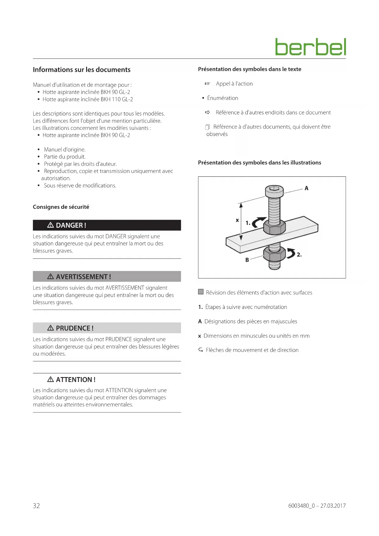 BKH 90 GL - Hotte BERBEL - Notice d'utilisation et mode d'emploi gratuit