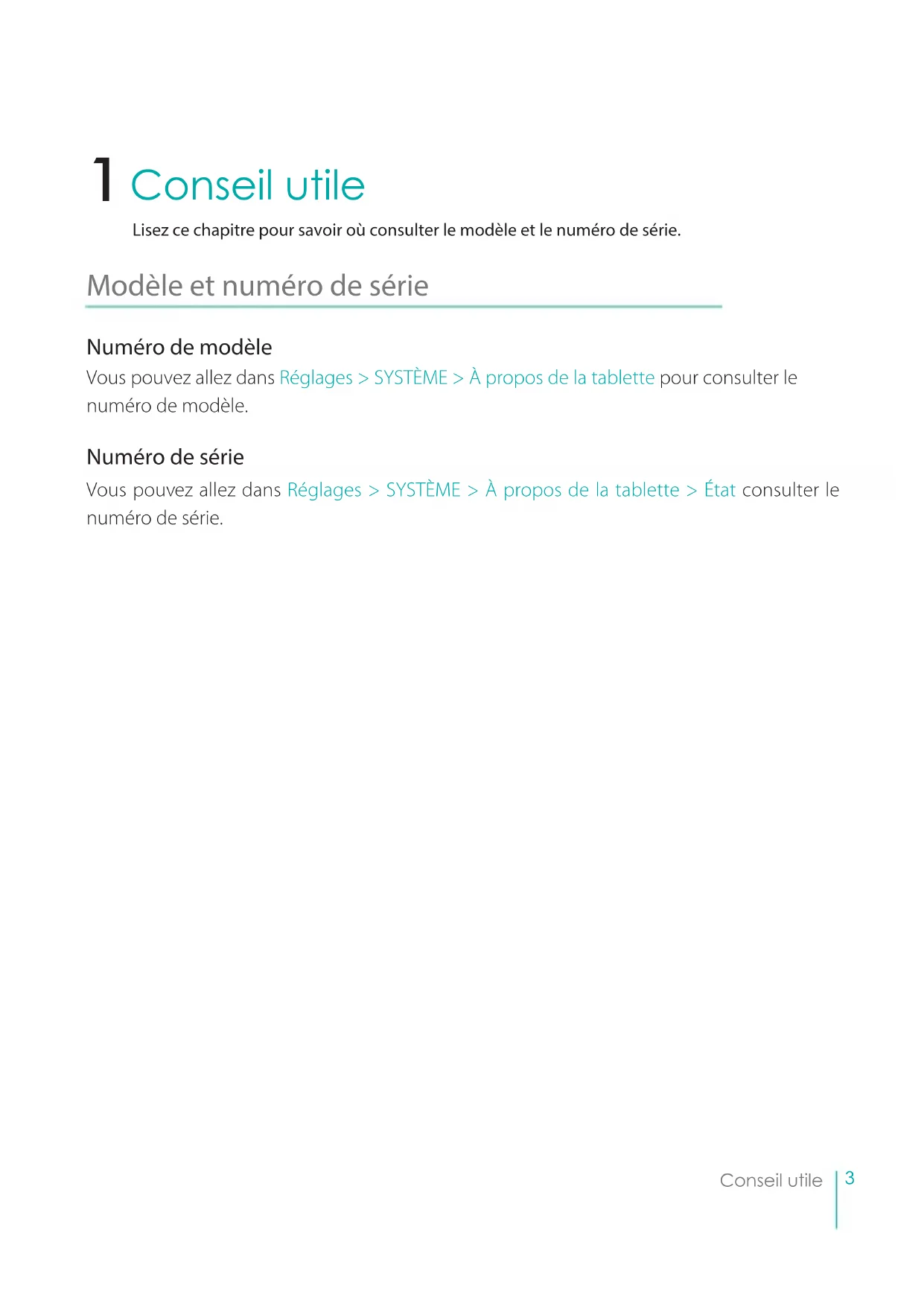 Vous pouvez allez dans Réglages > SYSTÈME > À propos de la tablette pour consulter le numéro de modèle.