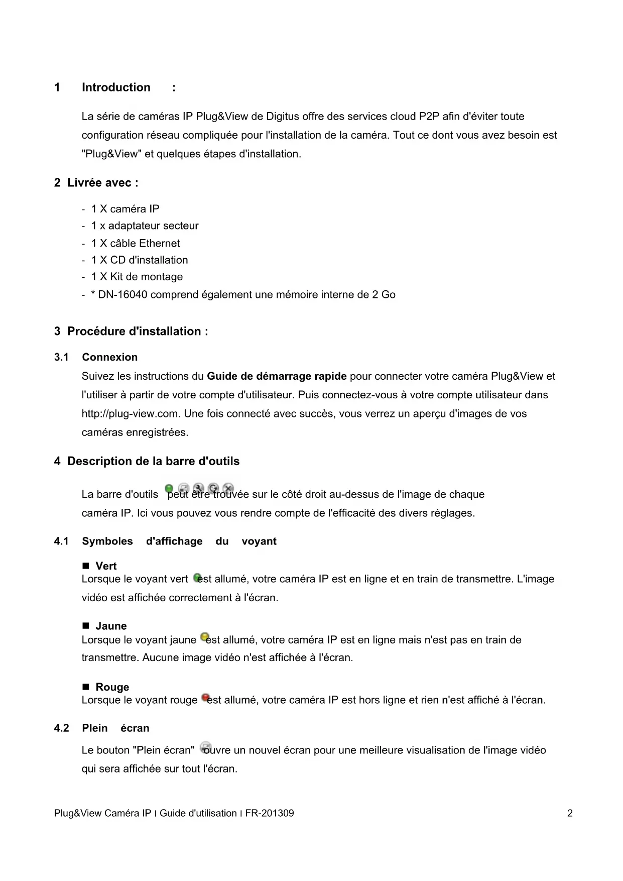 Lorsque levoyant vert est allumé,voire camera IP est en ligne et en train de transmettre.L'imag