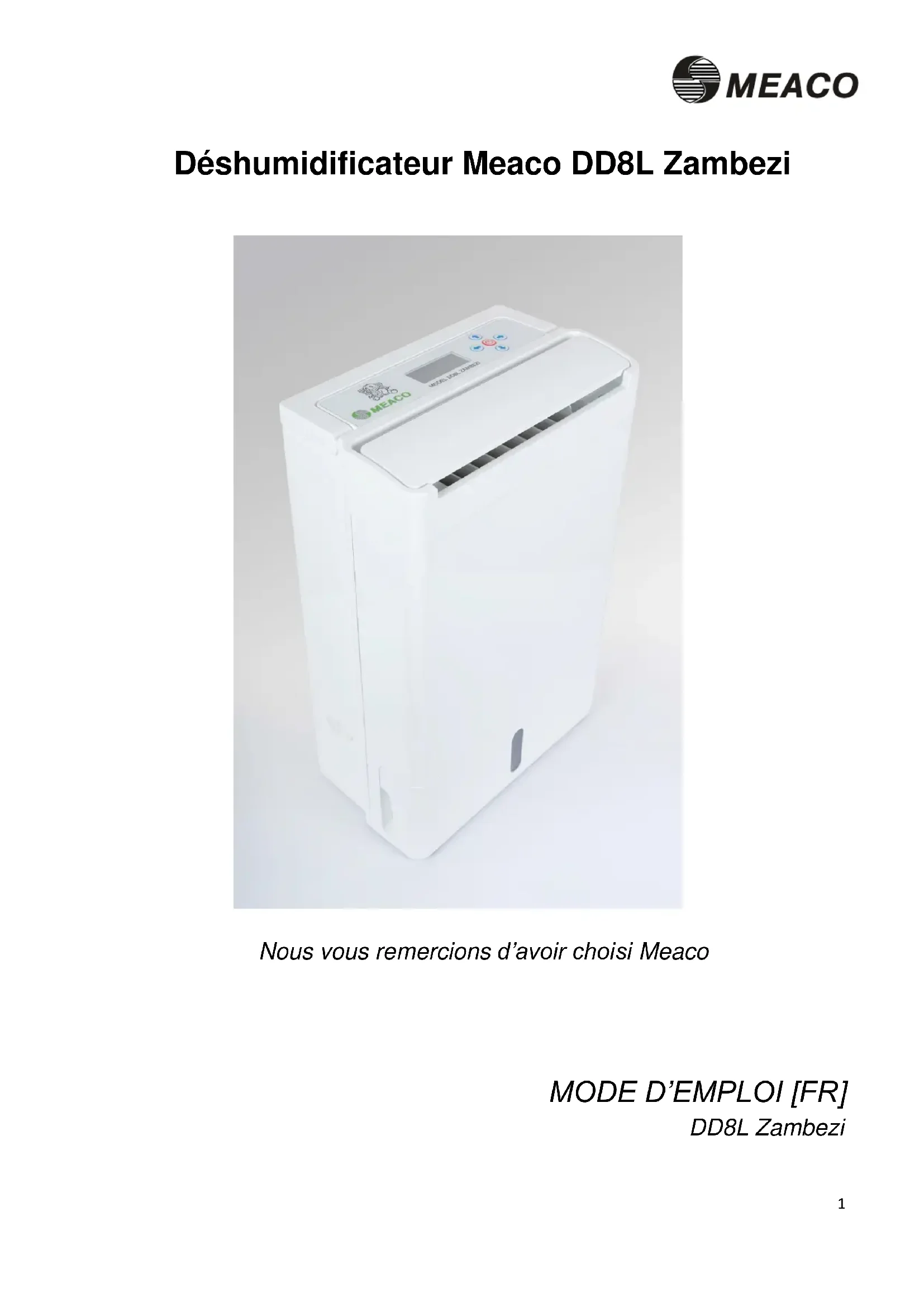 MODE D'EMPLOI DD8L Zambezi Meaco