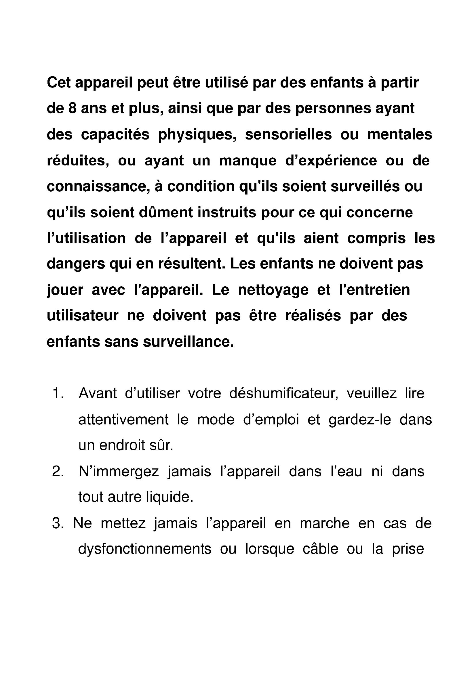 1. Avant d’utiliser votre déshumificateur, veuillez lire