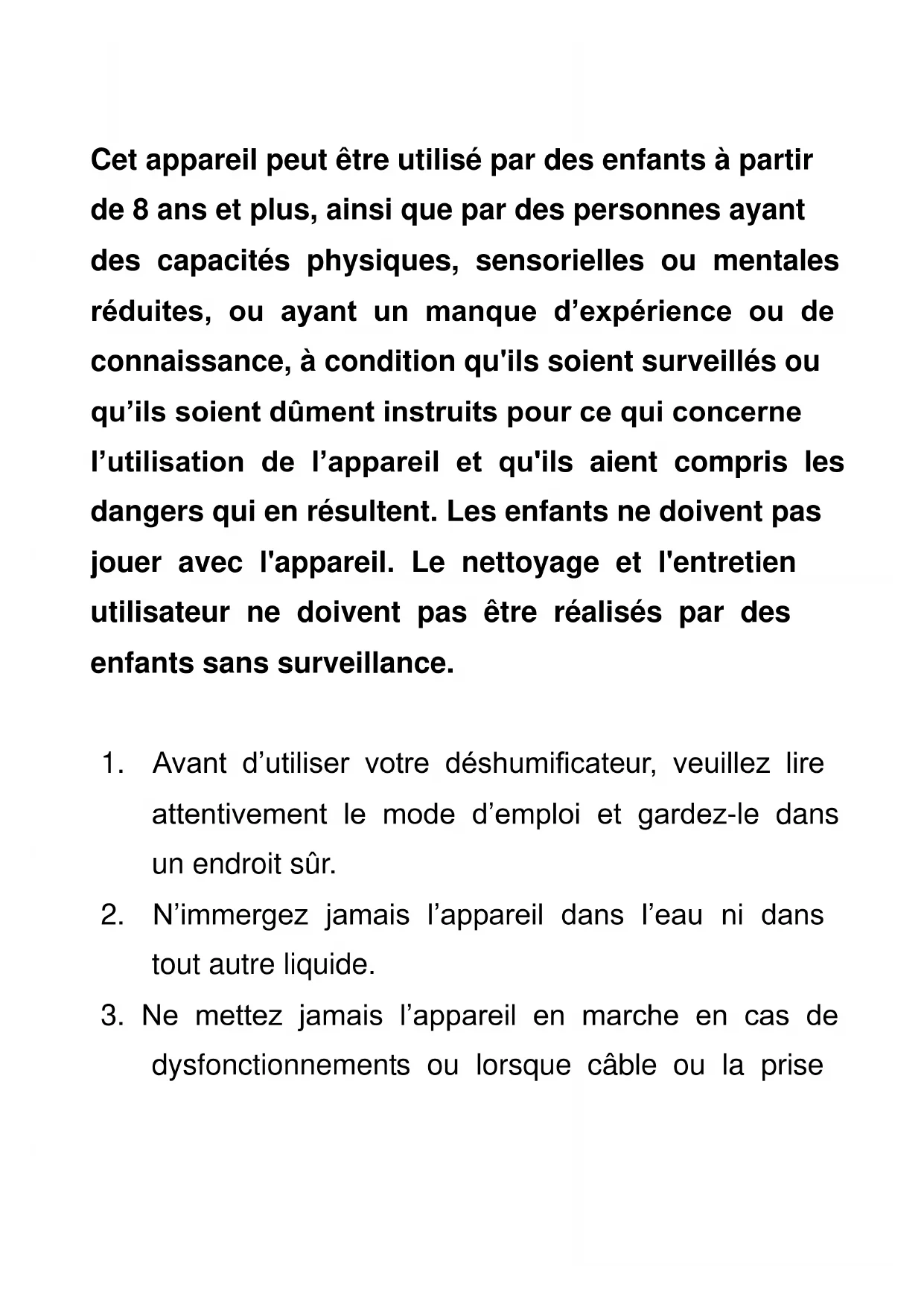 1. Avant d’utiliser votre déshumificateur, veuillez lire