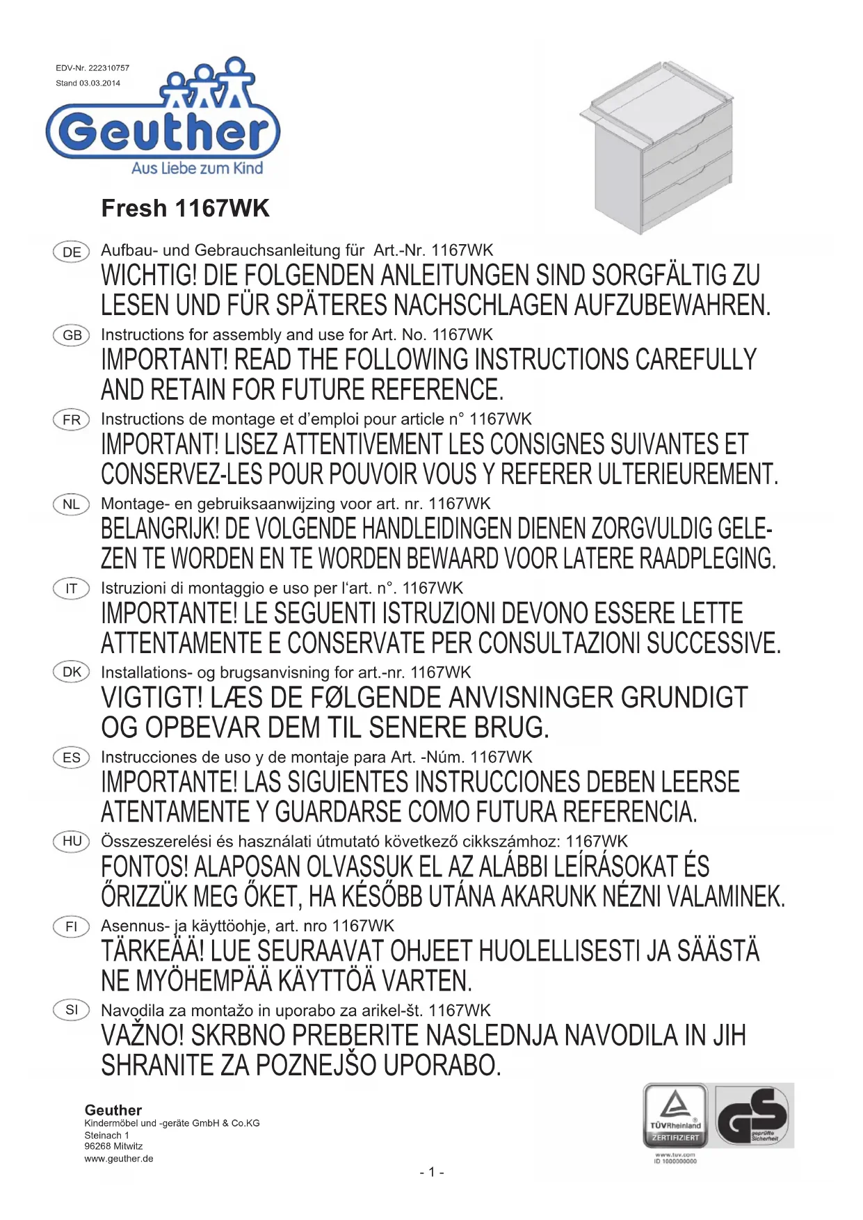 Fresh - Lit bébé Geuther - Notice d'utilisation et mode d'emploi gratuit